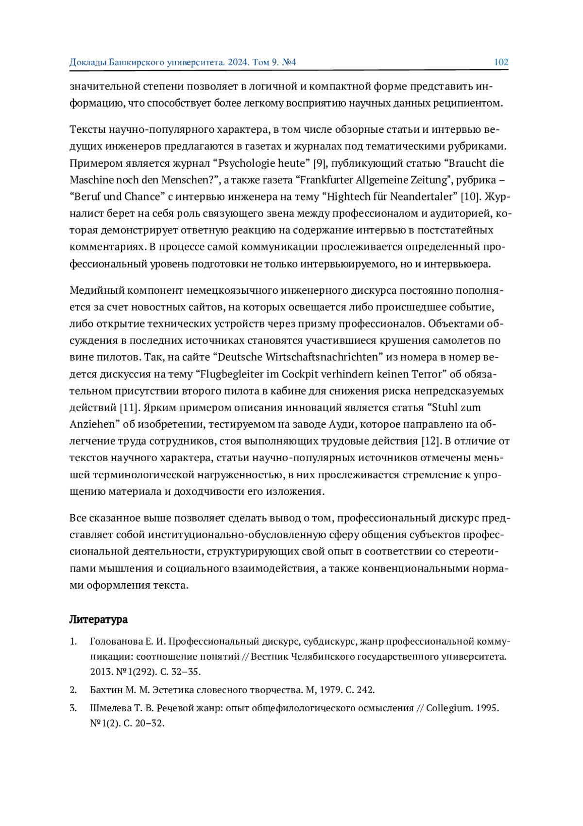 1. 	Голованова Е. И. Профессиональный дискурс, субдискурс, жанр профессиональной коммуникации: соотношение понятий // Вестник Челябинского государственного университета. 2013. №1(292). С. 32-35. EDN: PVPFPX