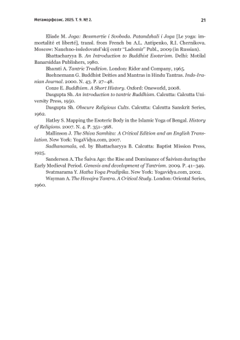 11. Hatley S. Mapping the Esoteric Body in the Islamic Yoga of Bengal // History of Religions. 2007. № 4. С. 351-368.