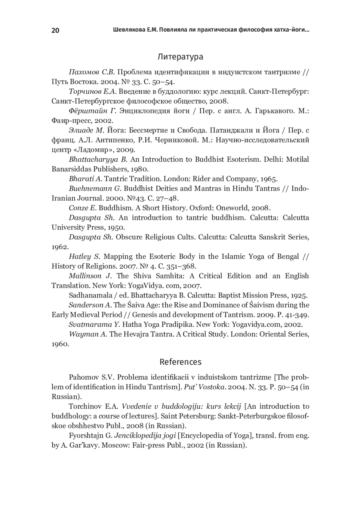 1. Пахомов С.В. Проблема идентификации в индуистском тантризме // Путь Востока. 2004. № 33. С. 50-54.