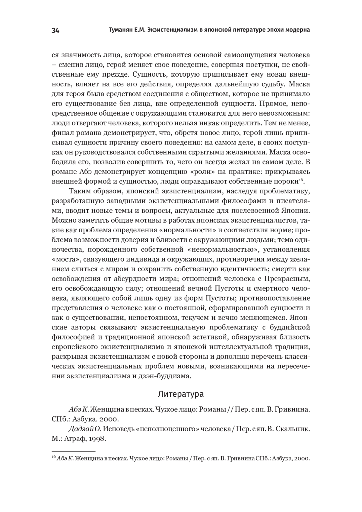 1. Абэ К. Женщина в песках. Чужое лицо: Романы // Пер. с яп. В. Гривнина. СПб.: Азбука. 2000.