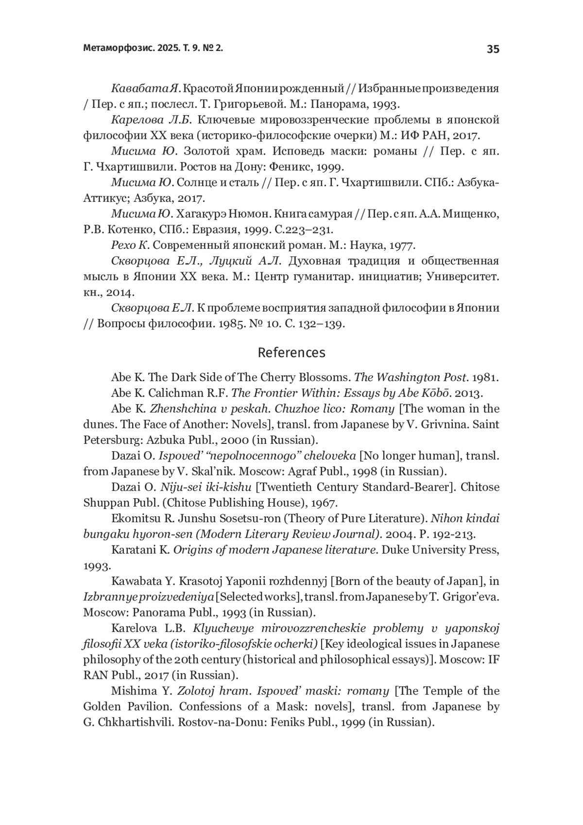 4. Карелова Л.Б. Ключевые мировоззренческие проблемы в японской философии XX века (историко-философские очерки) М.: ИФ РАН, 2017. EDN: YRNEMA