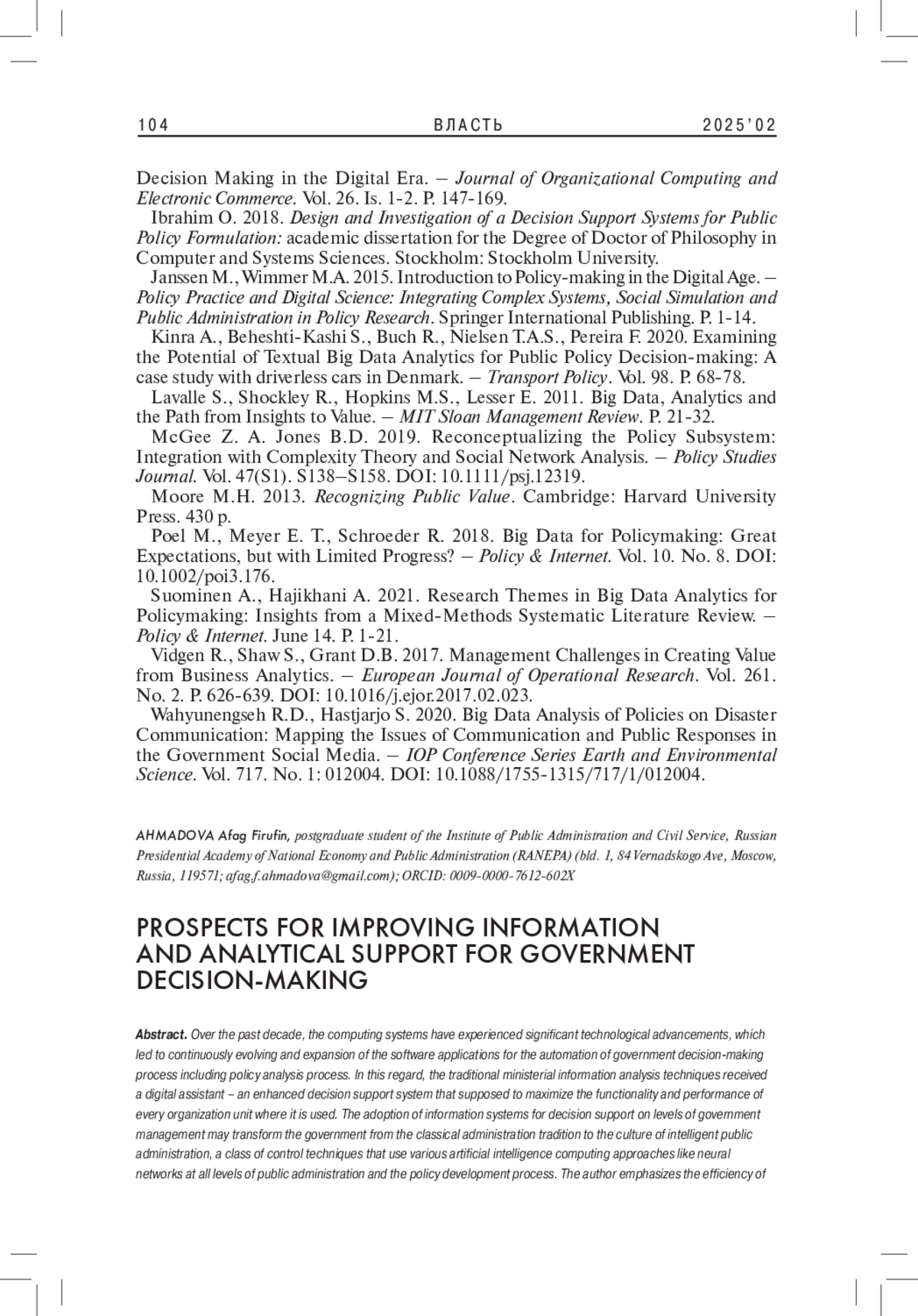 7. 	Dingelstad J., Borst R.T., Meijer A. 2022. Hybrid Data Competencies for Municipal Civil Servants: An Empirical Analysis of the Required Competencies for Data-Driven Decision-Making. - Public Personnel Management. Vol. 51. No. 2. P. 1-33. EDN: WDEMAG
