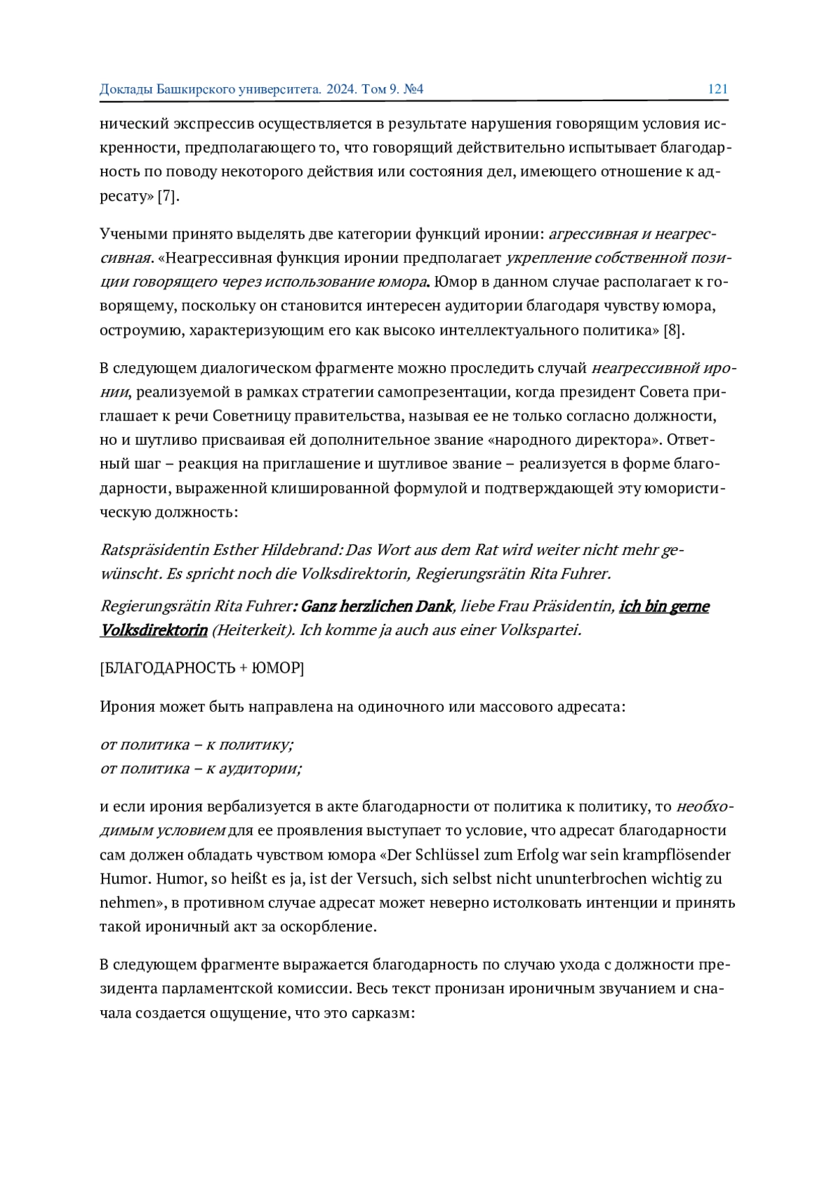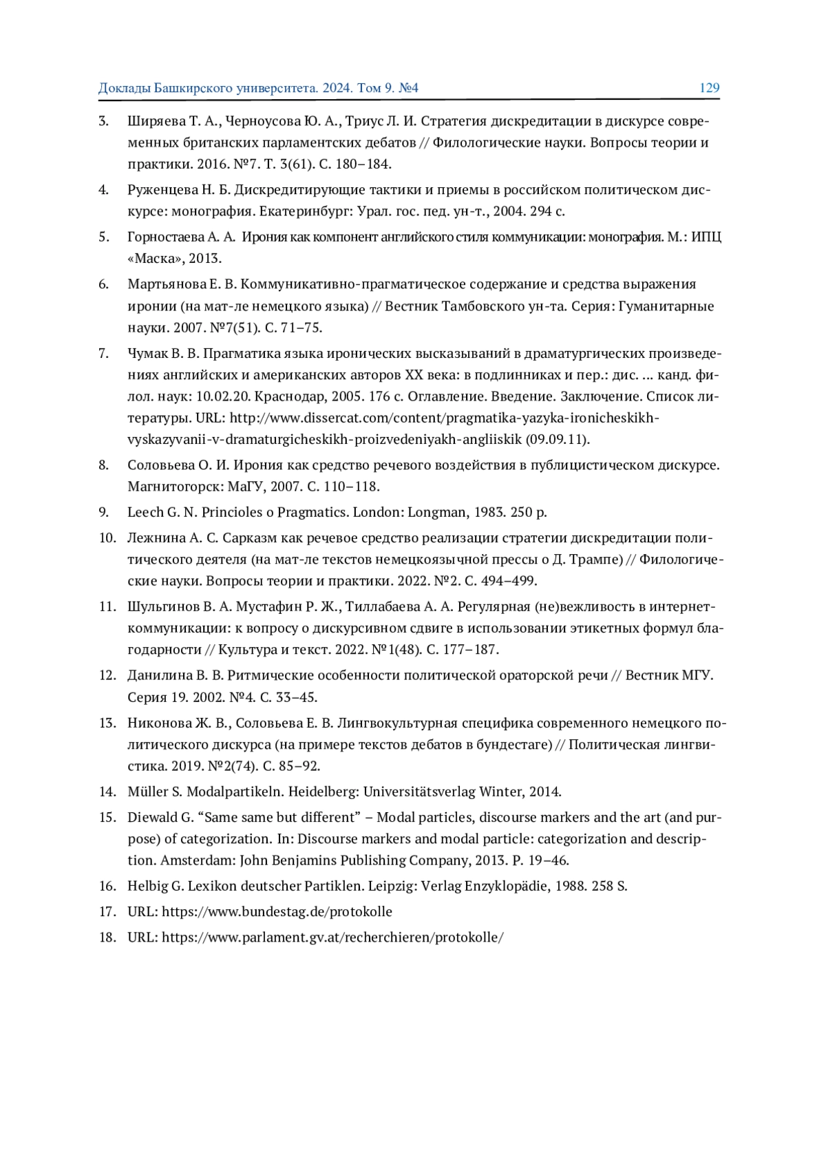 10. 	Лежнина А. С. Сарказм как речевое средство реализации стратегии дискредитации политического деятеля (на мат-ле текстов немецкоязычной прессы о Д. Трампе) // Филологические науки. Вопросы теории и практики. 2022. №2. С. 494-499. EDN: PMOOQX