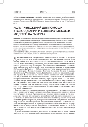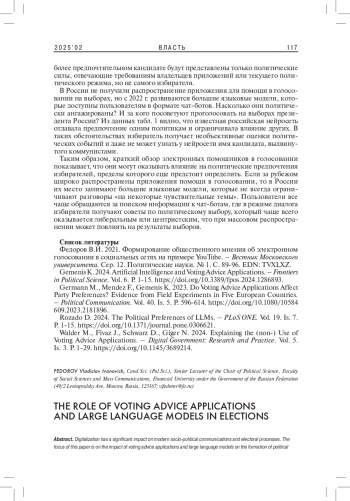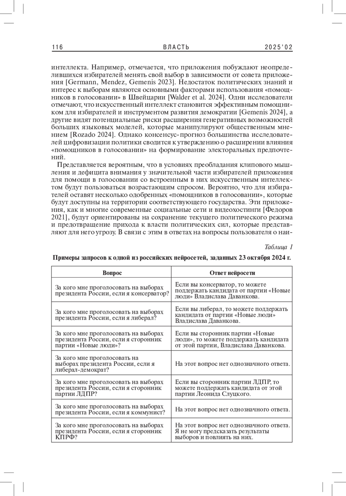 2. 	Gemenis K. 2024. Artificial Intelligence and Voting Advice Applications. - Frontiers in Political Science. Vol. 6. P. 1-15. DOI: 10.3389/fpos.2024.1286893 EDN: AKCOHI