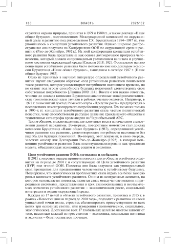 Статья посвящена рассмотрению концепции устойчивого развития, которая во многом продолжает доминировать в современном дискурсе о развитии. Последняя основана на Целях устойчивого развития ООН и возникла как ответ на глобальные вызовы, такие как исчерпание ресурсов и антропогенные нагрузки. Вместе с тем усиливается критика концепции устойчивого развития из-за того, что основное внимание в ней уделяется экономическим целям, а экологический аспект рассматривается односторонне. Имеются и философские противоречия: развитие плохо согласуется с устойчивостью из-за его нелинейного характера и циклически-волновой природы, поэтому кризисность является неотъемлемой чертой развития. Постепенно вырабатываются альтернативы устойчивому развитию, в частности концепция ответственного развития, опирающаяся на морально-нравственную мотивацию.