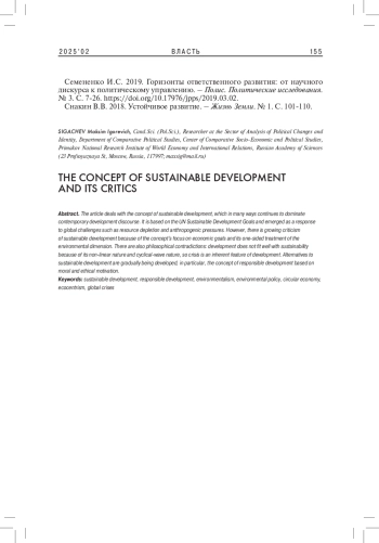 4. 	Семененко И.С. 2019. Горизонты ответственного развития: от научного дискурса к политическому управлению. - Полис. Политические исследования. № 3. С. 7-26. DOI: 10.17976/jpps/2019.03.02 EDN: WCZPDF