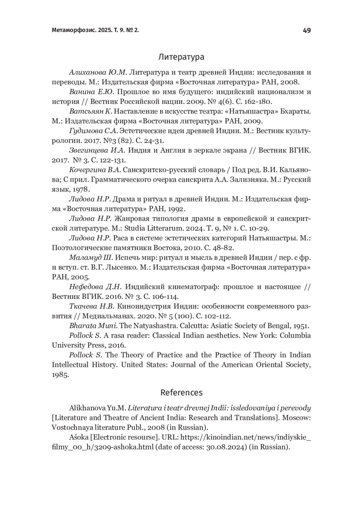 8. Лидова Н.Р. Жанровая типология драмы в европейской и санскритской литературе. М.: Studia Litterarum. 2024. Т. 9, № 1. С. 10-29.