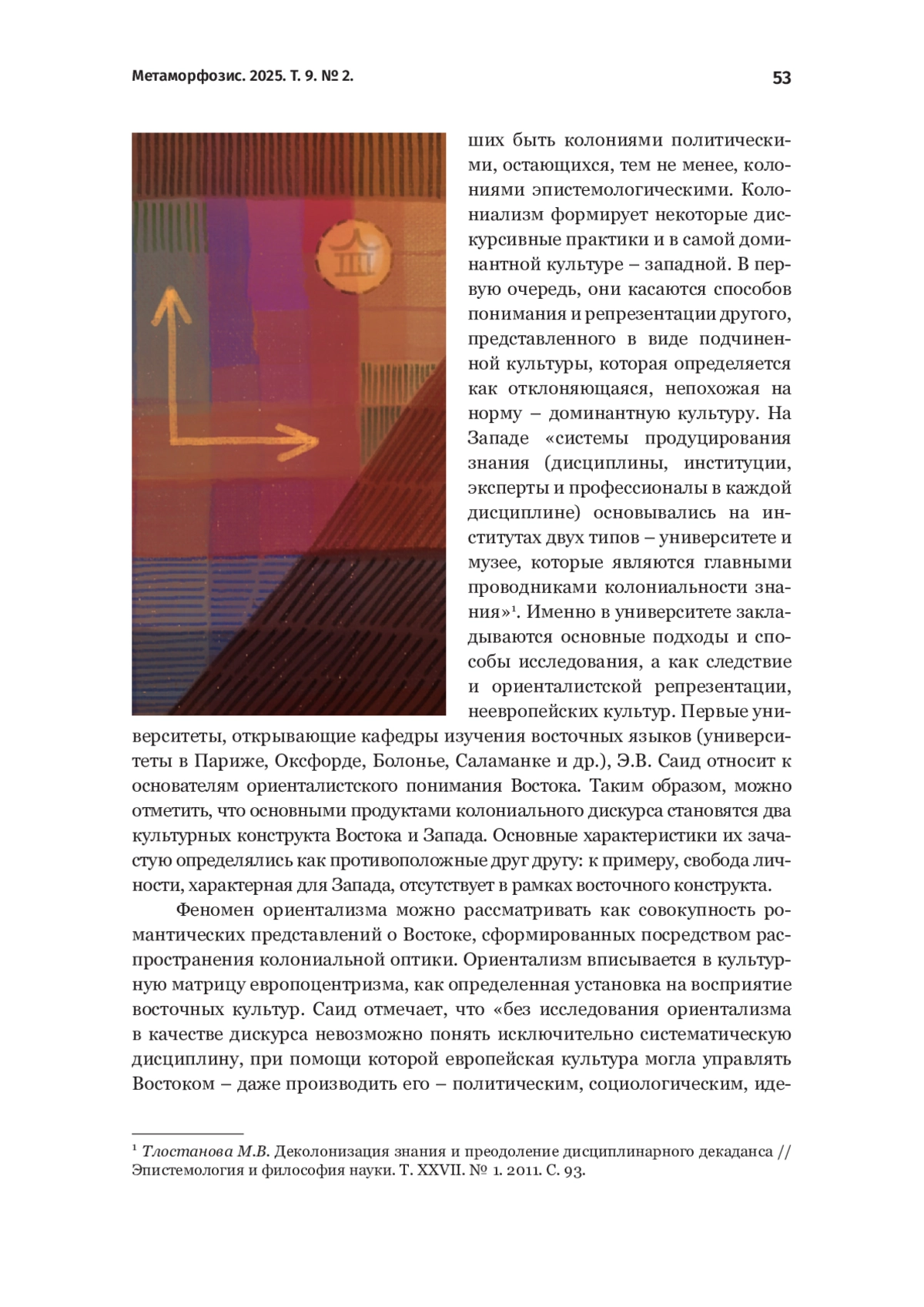 9. 	Тлостанова М.В. Деколонизация знания и преодоление дисципли-нарного декаданса // Эпистемология и философия науки. Т. XXVII. № 1. 2011.