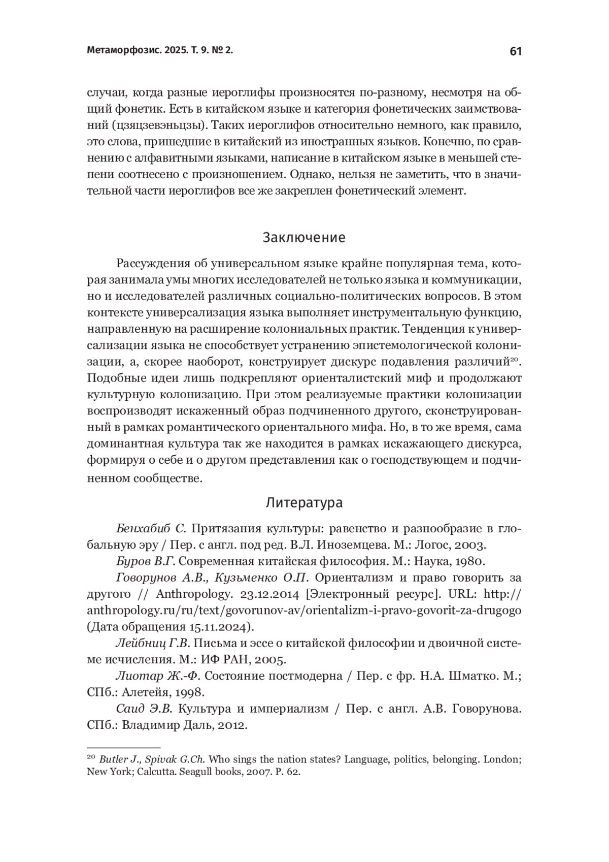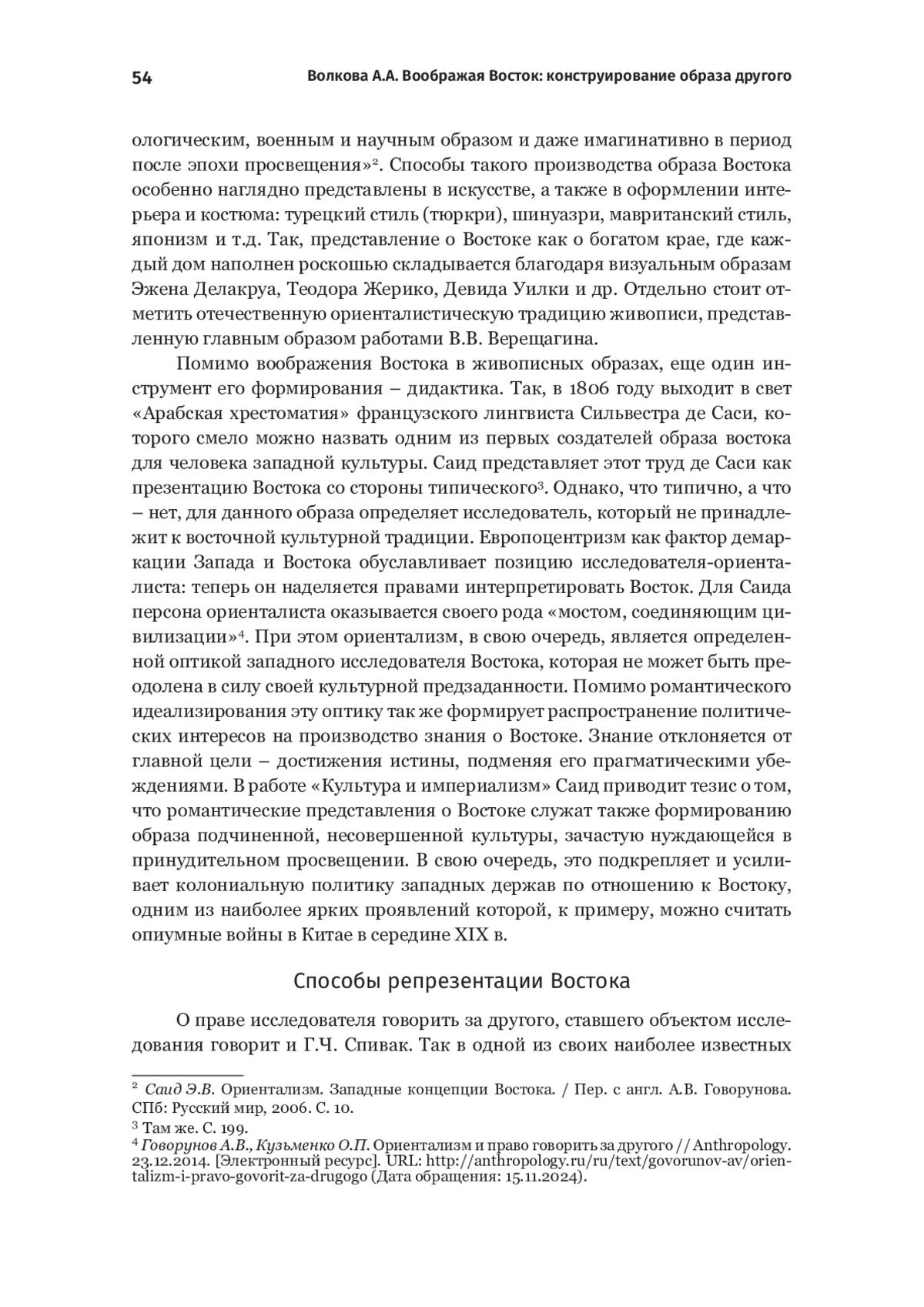3. 	Говорунов А.В., Кузьменко О.П. Ориентализм и право говорить за другого // Аnthropology. 23.12.2014 [Электронный ресурс]. URL: http://anthropology.ru/ru/text/govorunov-av/orientalizm-i-pravo-govorit-za-drugogo (Дата обращения 15.11.2024).
