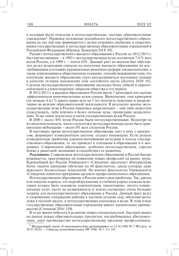 3. 	Панкина С.Н. 2018. Особенности современного этапа развития негосударственного высшего образования. - Экономические и социально-гуманитарные исследования. № 2(18). С. 122-131. EDN: XRGPSH