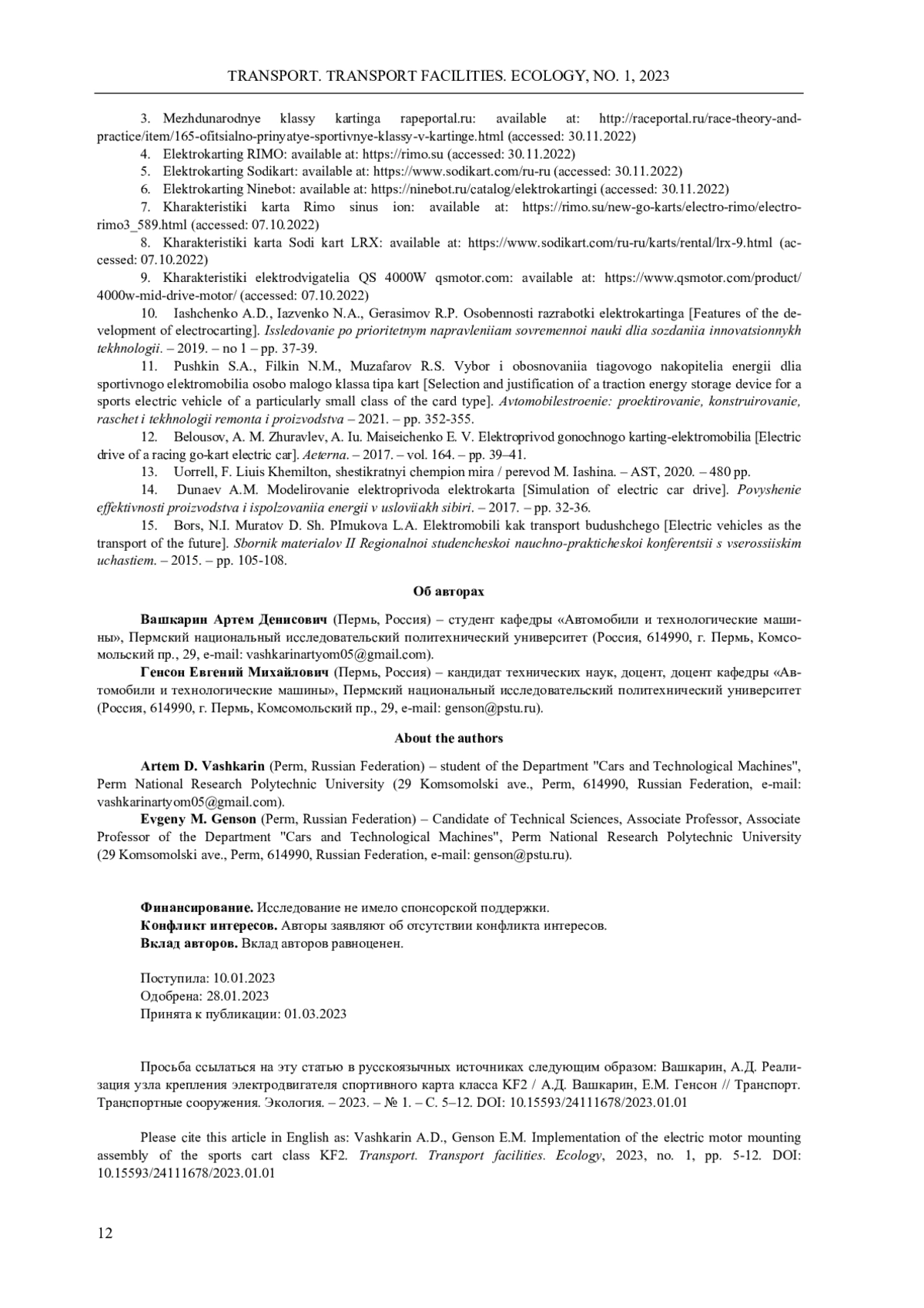 2. Волков О.А., Дуганова Е.В. Сравнительный анализ электрического и бензинового картов // XII Международный молодежный форум “Образования. Наука. Производство”. - Белгород, 2020. - С. 1204-1207. EDN: RAAWWA