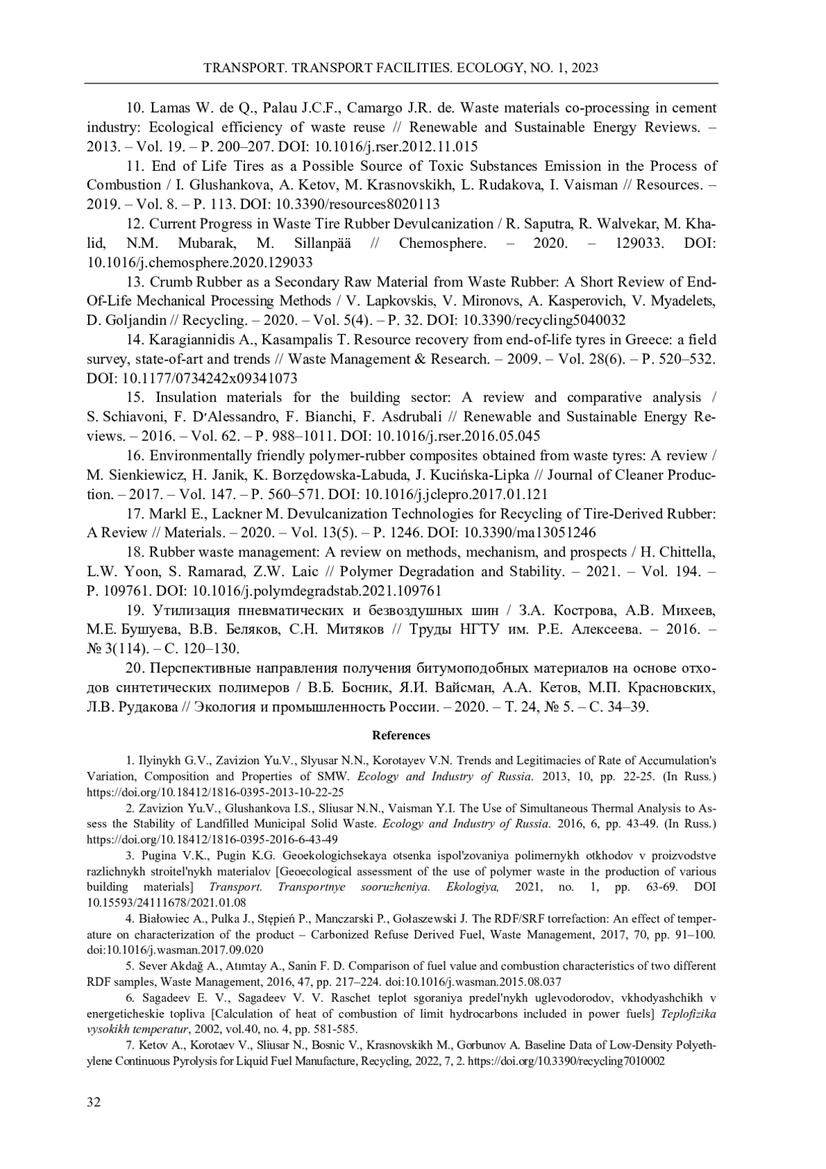 17. Markl E., Lackner M. Devulcanization Technologies for Recycling of Tire-Derived Rubber: A Review // Materials. - 2020. - Vol. 13(5). - P. 1246. DOI: 10.3390/ma13051246 EDN: VUMVSV