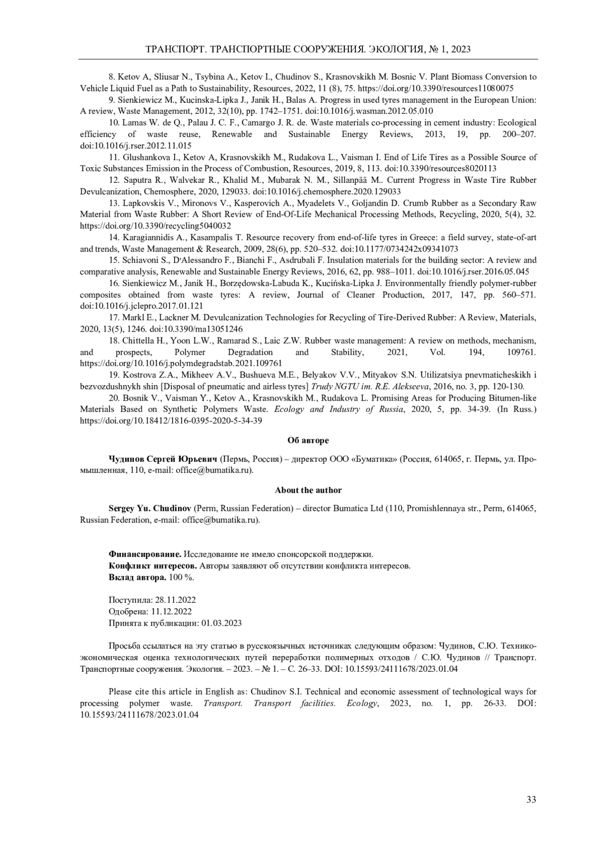3. Пугина В.К., Пугин К.Г. Геоэкологическая оценка использования полимерных отходов в производстве различных строительных материалов // Транспорт. Транспортные сооружения. Экология. 2021. - № 1. - С. 63-69. DOI: 10.15593/24111678/2021.01.08 EDN: OORMDO