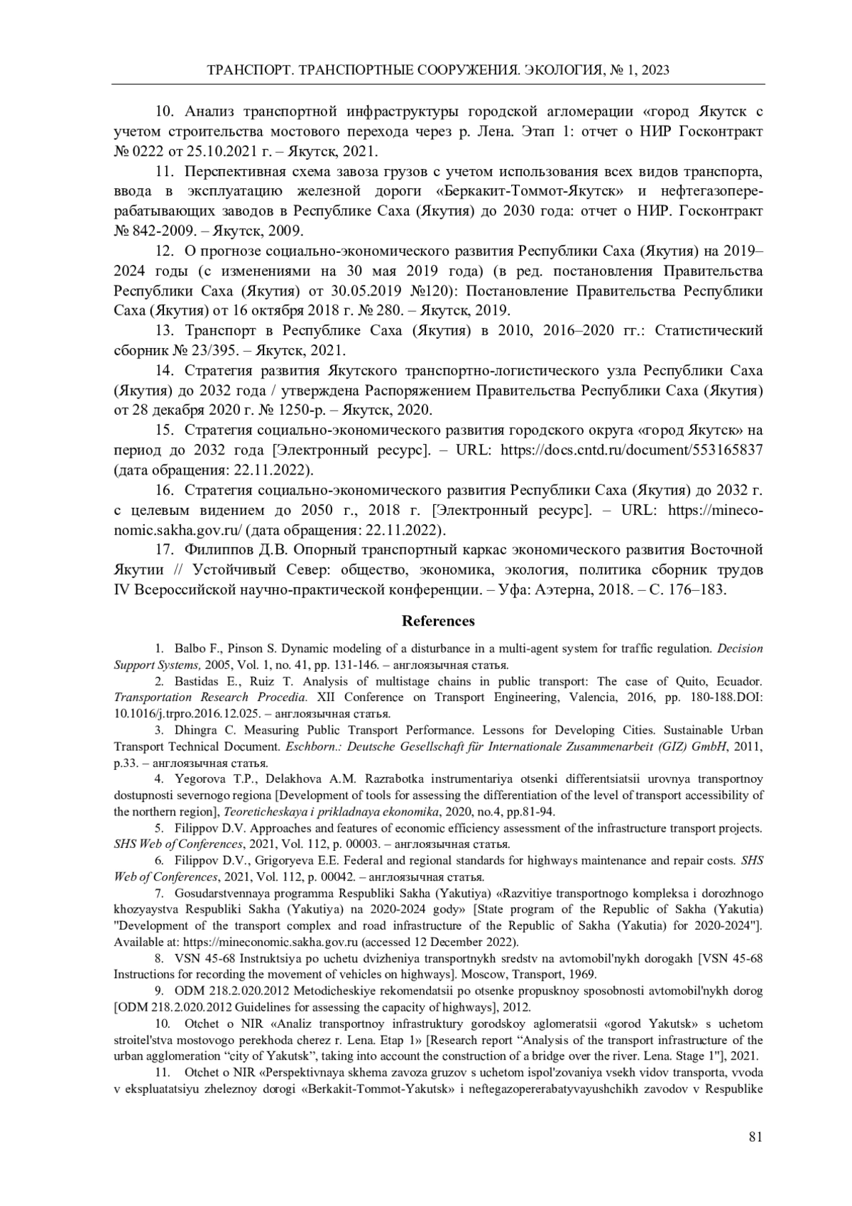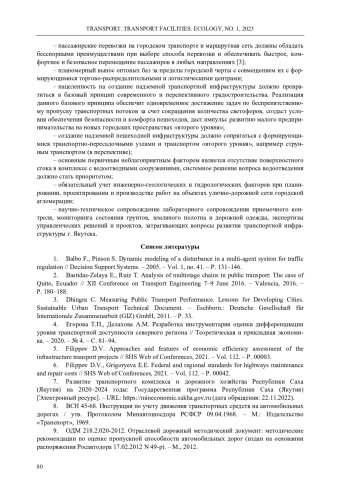 10. 	Анализ транспортной инфраструктуры городской агломерации “город Якутск с учетом строительства мостового перехода через р. Лена. Этап 1: отчет о НИР Госконтракт № 0222 от 25.10.2021 г. - Якутск, 2021.