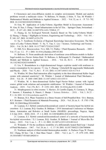 15. 	Liu, Y. Boundedness in a high-dimensional forager-exploiter model with nonlinear resource consumption by two species / Y. Liu, Y. Zhuang // Zeitschrift für angewandte Mathematik und Physik. - 2020. - Vol. 71, № 5. - P. 151.  DOI: 10.1007/s00033-020-01376-8  EDN: MTKPGP