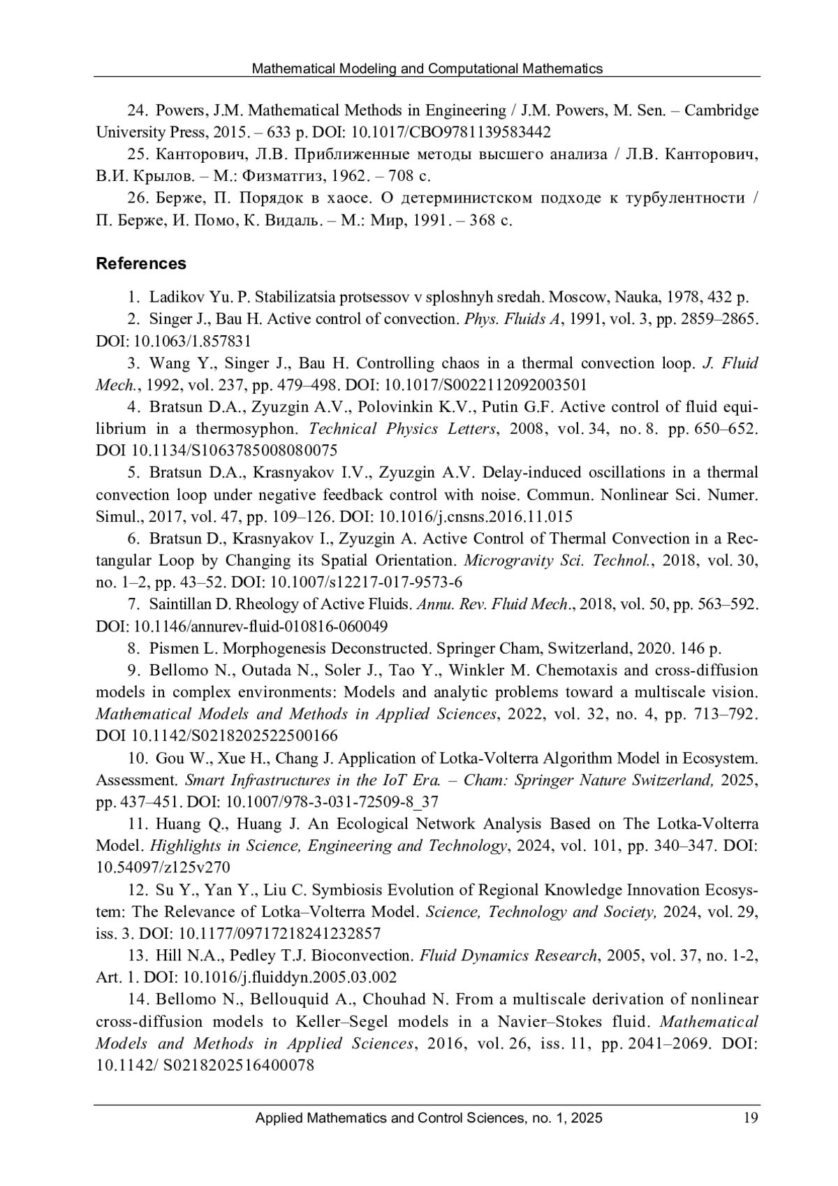 2. 	Singer, J. Active control of convection / J. Singer, H. Bau // Phys. Fluids A. - 1991. - Vol. 3. - P. 2859-2865.  DOI: 10.1063/1.857831