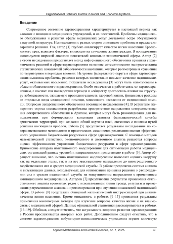 Современное состояние здравоохранения характеризуется в настоящий период как сложное с позиции и медицинских учреждений, и их посетителей. Проблемы медицинского обслуживания и развития сферы медицинских услуг достаточно остро обсуждаются в научной литературе. Исследователи с разных сторон описывают проблемы и предлагают варианты решения. Так, автор [1] глубоко анализирует качество жизни населения Красноярского края, выявляет факторы, влияющие на улучшение жизни граждан. В исследовании используется широкий диапазон показателей социально-экономической сферы. Автор [2] в своем исследовании представляет метод информационного обеспечения принятия управленческих решений в сфере здравоохранения на основе математического экспресс-анализа статистических показателей заболеваемости населения, которые рассмотрены в сравнении по территориям и периодам времени. На уровне федерального округа в сфере здравоохранения выявлены проблемы, решение которых значительно повысит качество медицинских услуг, оказываемых населению.