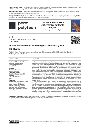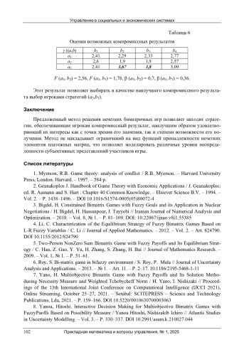 4. Li, C. Characterization of the Equilibrium Strategy of Fuzzy Bimatrix Games Based on L-R Fuzzy Variables / C. Li // Journal of Applied Mathematics. - 2012. - Vol. 2. - Art. 824790. DOI: 10.1155/2012/824790