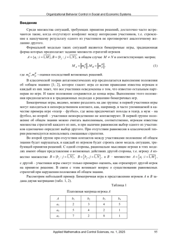 Формальной моделью таких ситуаций являются биматричные игры, традиционная форма которых предполагает задание множеств стратегий игроков