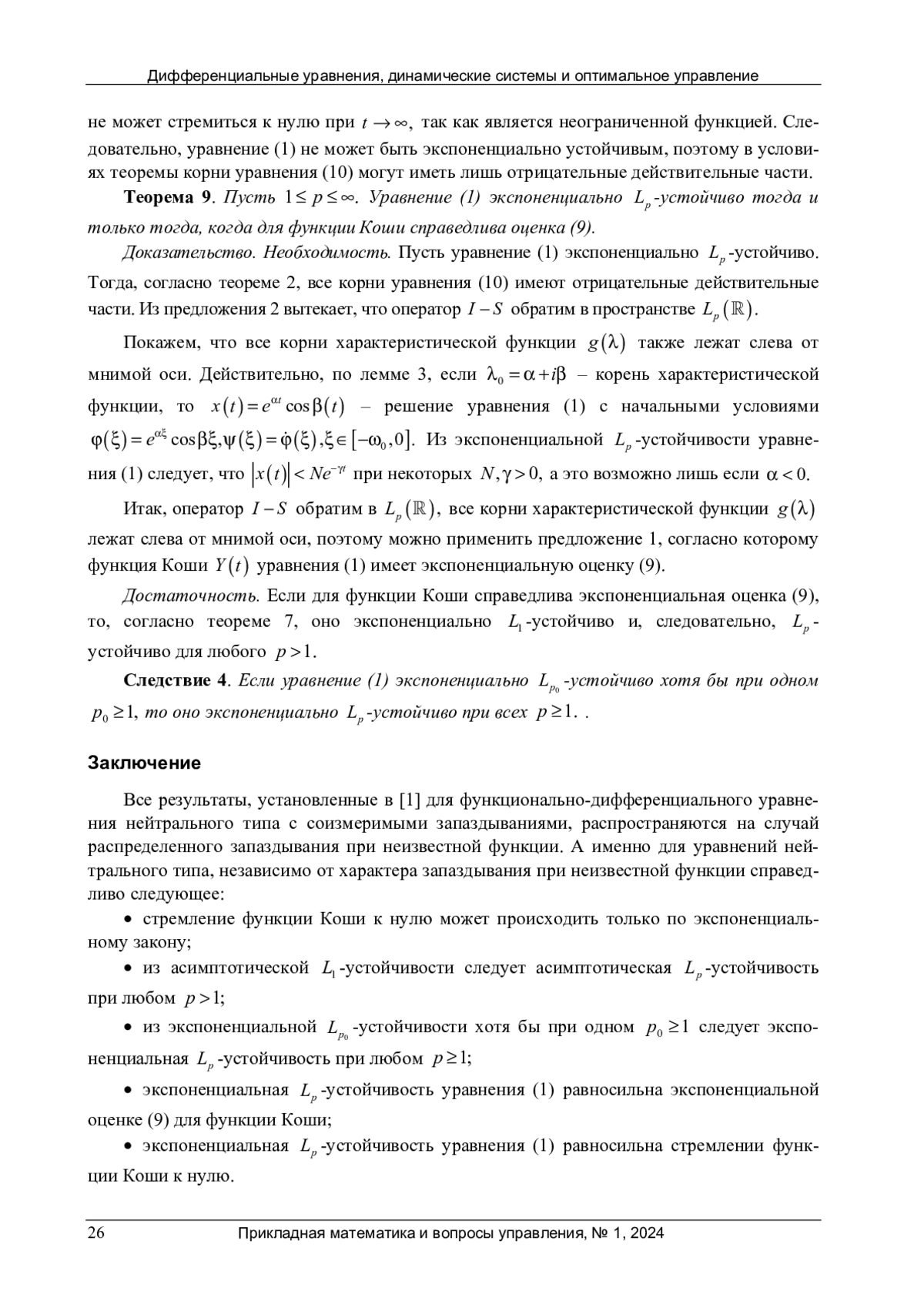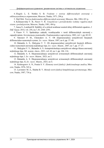 13. Баландин, А.С. Экспоненциальная устойчивость автономных дифференциальных уравнений нейтрального типа. II / А.С. Баландин // Известия вузов. Математика. - 2023. - № 4. EDN: BJZQHA
