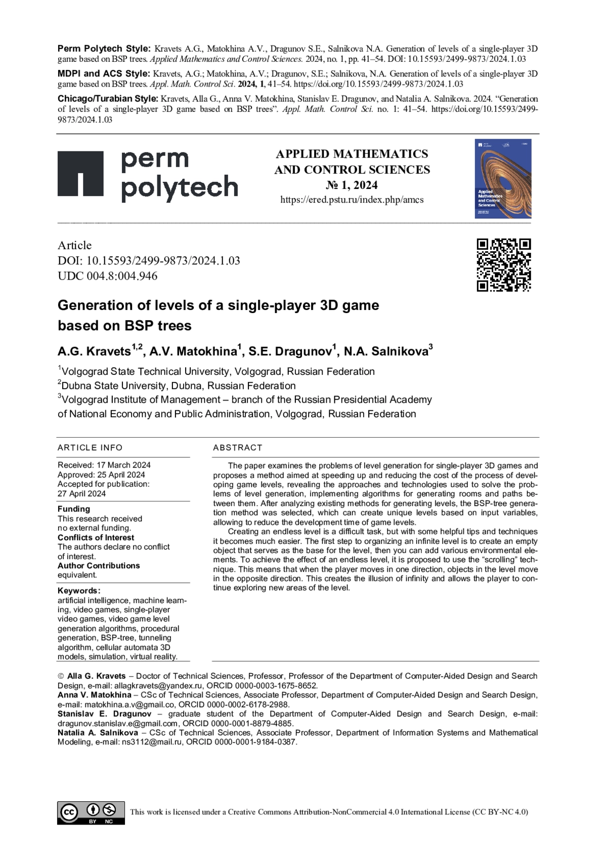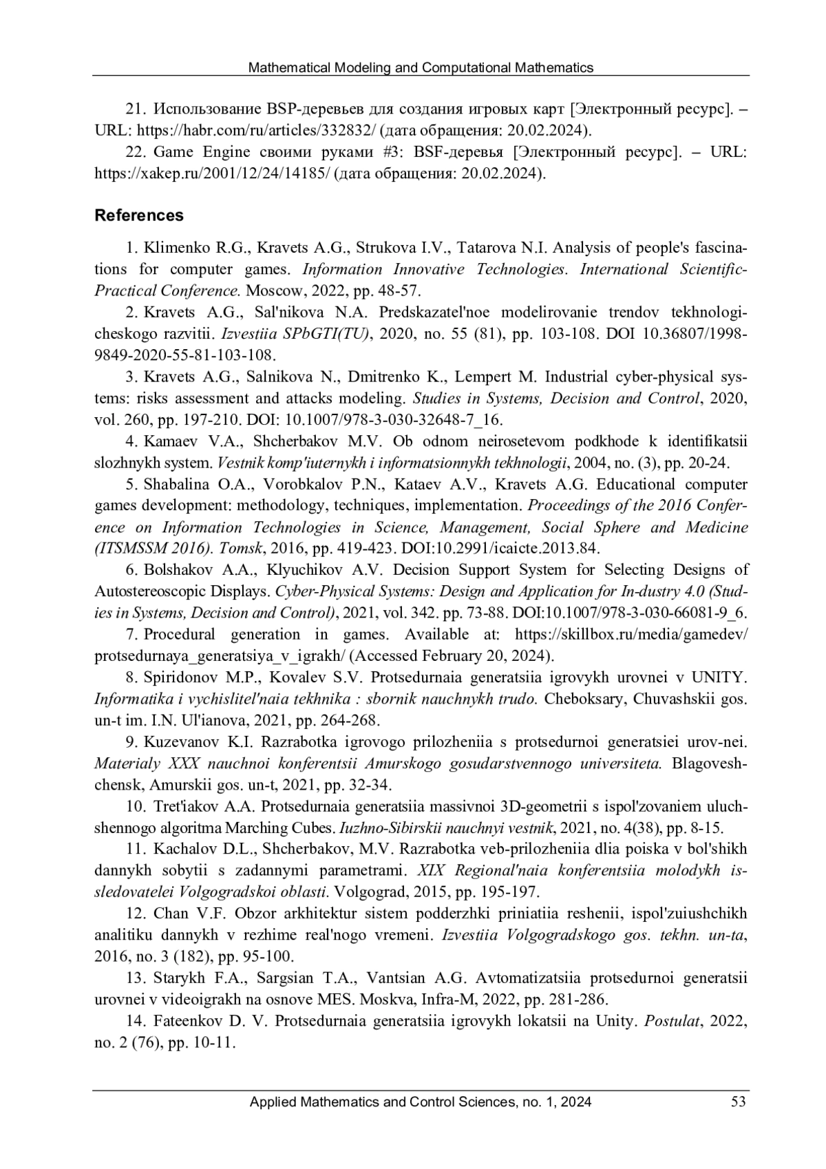 13. 	Старых, Ф.А. Автоматизация процедурной генерации уровней в видеоиграх на основе МЭС / Ф.А. Старых, Т.А. Саргсян, А.Г. Ванцян. - М.: Инфра-М, 2022. - С. 281-286.  EDN: RVYPTY