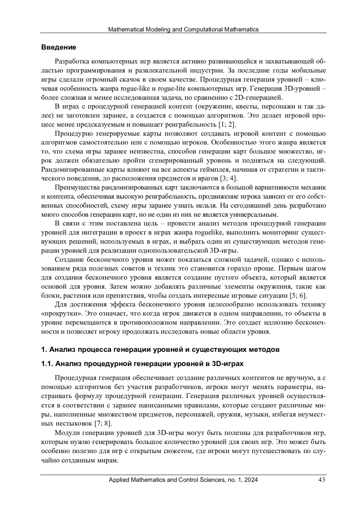 8. 	Спиридонов, М.П. Процедурная генерация игровых уровней в UNITY / М.П. Спиридонов, С.В. Ковалев // Информатика и вычислительная техника: сб. науч. тр. - Чебоксары: Чувашский гос. ун-т им. И.Н. Ульянов, 2021. - С. 264-268.  EDN: SJISUI