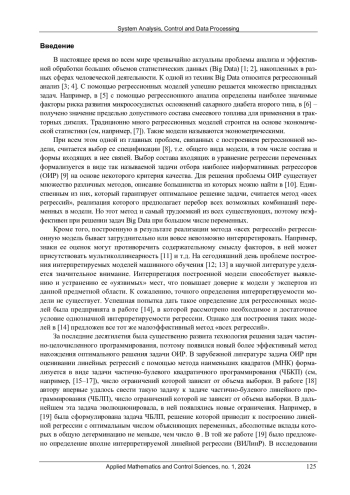 В настоящее время во всем мире чрезвычайно актуальны проблемы анализа и эффективной обработки больших объемов статистических данных (Big Data) [1; 2], накопленных в разных сферах человеческой деятельности. К одной из техник Big Data относится регрессионный анализ [3; 4]. С помощью регрессионных моделей успешно решается множество прикладных задач. Например, в [5] с помощью регрессионного анализа определены наиболее значимые факторы риска развития микрососудистых осложнений сахарного диабета второго типа, в [6] – получено значение предельно допустимого состава смесевого топлива для применения в тракторных дизелях. Традиционно много регрессионных моделей строится на основе экономической статистики (см, например, [7]). Такие модели называются эконометрическими