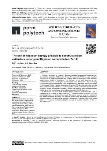 13. 	Лисицин, Д.В. Оценивание параметров распределения ограниченной случайной величины, робастное к нарушению границ / Д.В. Лисицин, К.В. Гаврилов // Научный вестник НГТУ. - 2016. - № 2(63). - С. 70-89.  DOI: 10.17212/1814-1196-2016-2-70-89  EDN: WHRSDH
