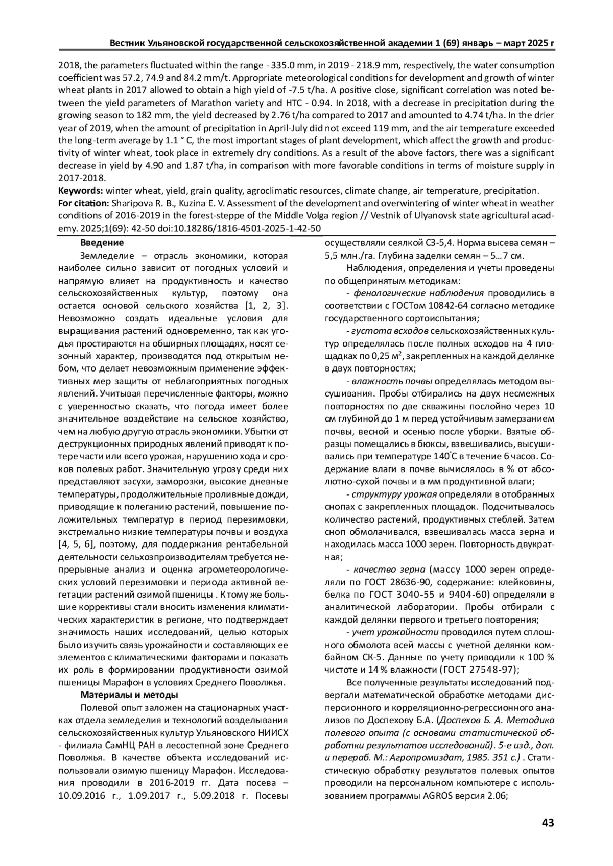 15. Никитин С.Н., Хакимов Р. А. Влияние сроков сева, средств химизации и биологизации на продуктивность и качество озимой пшеницы в условиях лесостепи среднего Поволжья. Ульяновск: УлГТУ, 2024. 122 с. EDN: UAXKIB