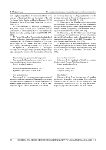 Статья посвящена исследованию разработки моделей словарей английского языка в современных лексикографических исследованиях. Рассматриваются основные этапы создания одноязычных и двуязычных справочников, изучается использование корпусных данных в процессе моделирования изданий. Выделяются сходства в процессе создания печатных и электронных словарей, такие как планирование справочника, определение потенциальной структуры, работа по проектированию мега-, макро- и микроструктуры изданий и др. Отличительной чертой моделирования электронного издания является подготовка особого программного обеспечения, на котором будут размещаться материалы словаря. В настоящее время уделяется особое внимание нуждам и потребностям пользователя. В рамках исследования потребностей потенциальной аудитории словарей лексикографы прибегают к использованию особого инструмента - анкетирования пользователей как подготовительного этапа в процессе создания словаря определенного типа. Анализ ответов аудитории на вопросы позволяет лексикографам сформулировать принципы организации мега-, макро- и микроструктуры издания, принимая во внимание потребности потенциального адресата. Отдельное место в лексикографических исследованиях принадлежит проведению ассоциативного эксперимента, результаты которого (дополнительная помета к лексическим единицам) могут быть непосредственно использованы лексикографами в процессе моделирования словарной статьи. Создание терминологических изданий приобретает отдельную популярность в практической лексикографии. Формируются новые отрасли знаний, что ведет к появлению новых терминов, которые необходимо включать в словари. Такие справочники традиционно публикуются в печатном варианте, однако в настоящее время появляется большое количество электронных специальных изданий, моделирование которых происходит с помощью различных лингвистических и математических методов.