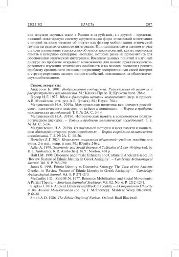 4. 	Медушевский Н.А. 2019б. Историческая память в современном политологическом дискурсе. - Теории и проблемы политических исследований. Т. 8. № 3A. С. 5-14. EDN: YHQNZU