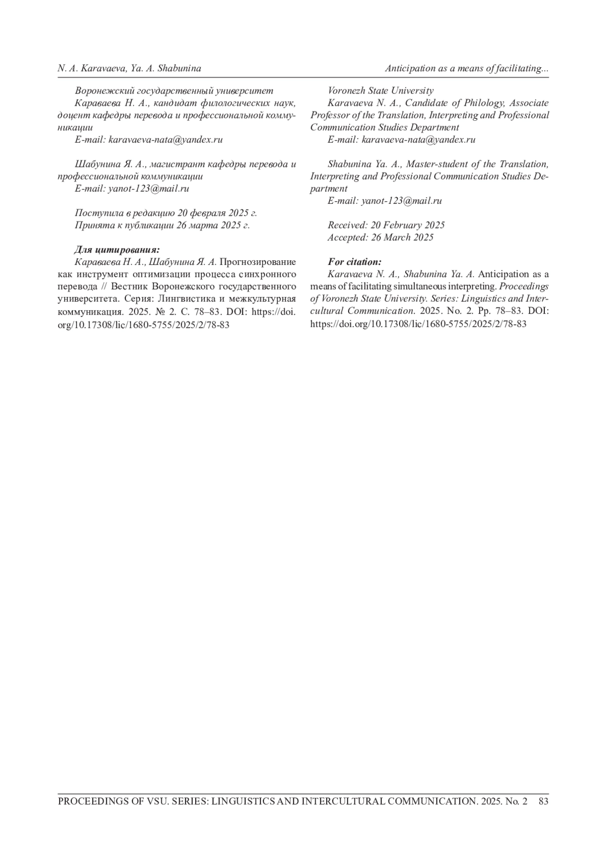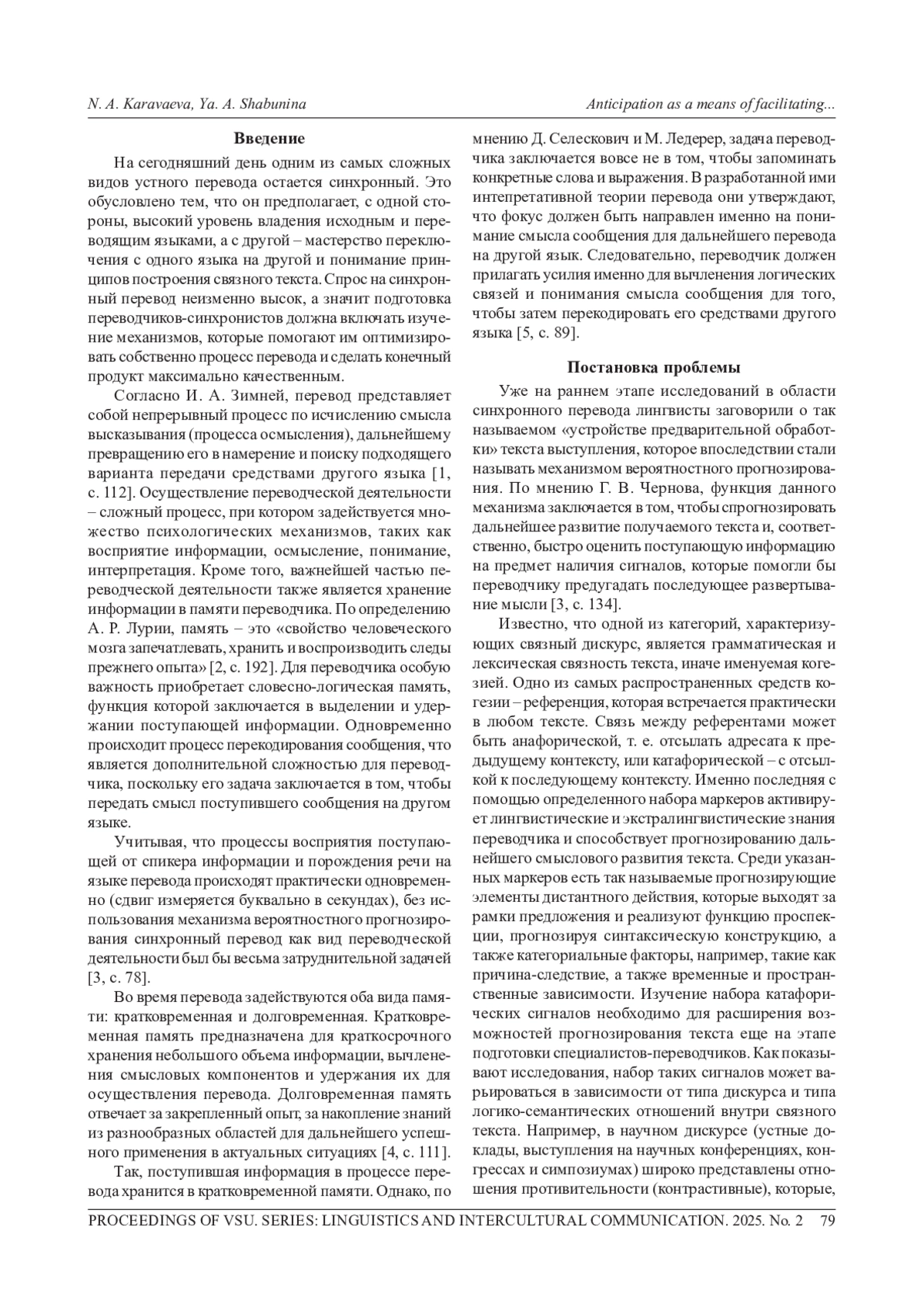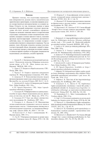 4. 	Андреева В. Н. Психолингвистические модели функционирования памяти при синхронном переводе // Вестник Рос. гос. ун-та им. И. Канта. 2007. № 2. С. 16-21.