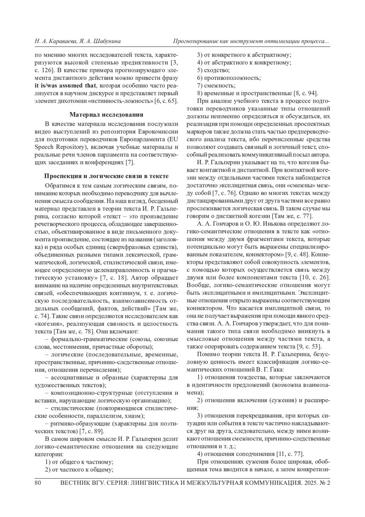 В настоящей статье рассматривается вопрос о возможности оптимизации процесса синхронного перевода с помощью механизма вероятностного прогнозирования посредством анализа явных и скрытых сигналов последующего развития текста. Эти сигналы могут представлять собой элементы дистантного действия, которые проецируют дальнейшее развертывание мысли и позволяют переводчику предвосхищать еще не полученную им информацию и таким образом экономить время и усилия по перекодированию предназначенного для перевода звучащего текста. Постоянное внимание к указанным элементам как в процессе подготовки специалистов по синхронному переводу, так и на этапе осуществления профессионального перевода в реальных условиях, освоение арсенала таких средств наряду с другими специфическими навыками обеспечивает высокое качество текста перевода и придает переводчику уверенность в собственных возможностях, снижает уровень его тревожности и способствует достижению взаимопонимания между спикером и аудиторией. Освоение набора логико-семантических отношений в тексте служит основой для анализа того, как функционируют прогнозирующие элементы дистантного действия в конкретном контексте и, таким образом, является обязательной составляющей подготовки переводчиков-синхронистов и непременным атрибутом арсенала средств профессионального синхрониста.