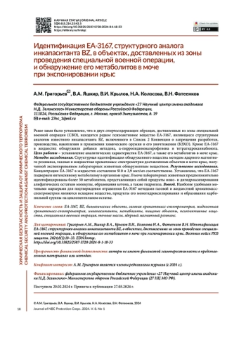 17. Заикина ОЛ, Шилов ВВ, Лодягин АН, Глушков СИ, Григорьев АМ. Установление структур свободных и глюкуронидированных метаболитов α-пирролидиновалерофенона в моче человека методом жидкостной хромато масс спектрометрии при измерении точных масс. Журн аналит химии. 2019;74(5):381-96. https://doi.org/10.1134/S0044450219020130