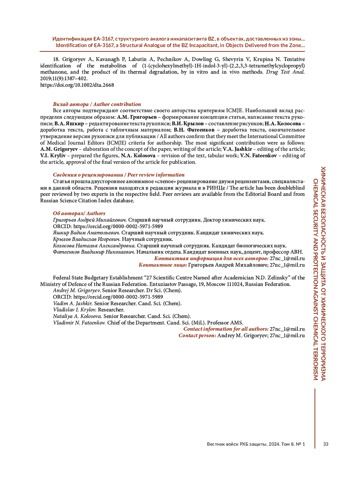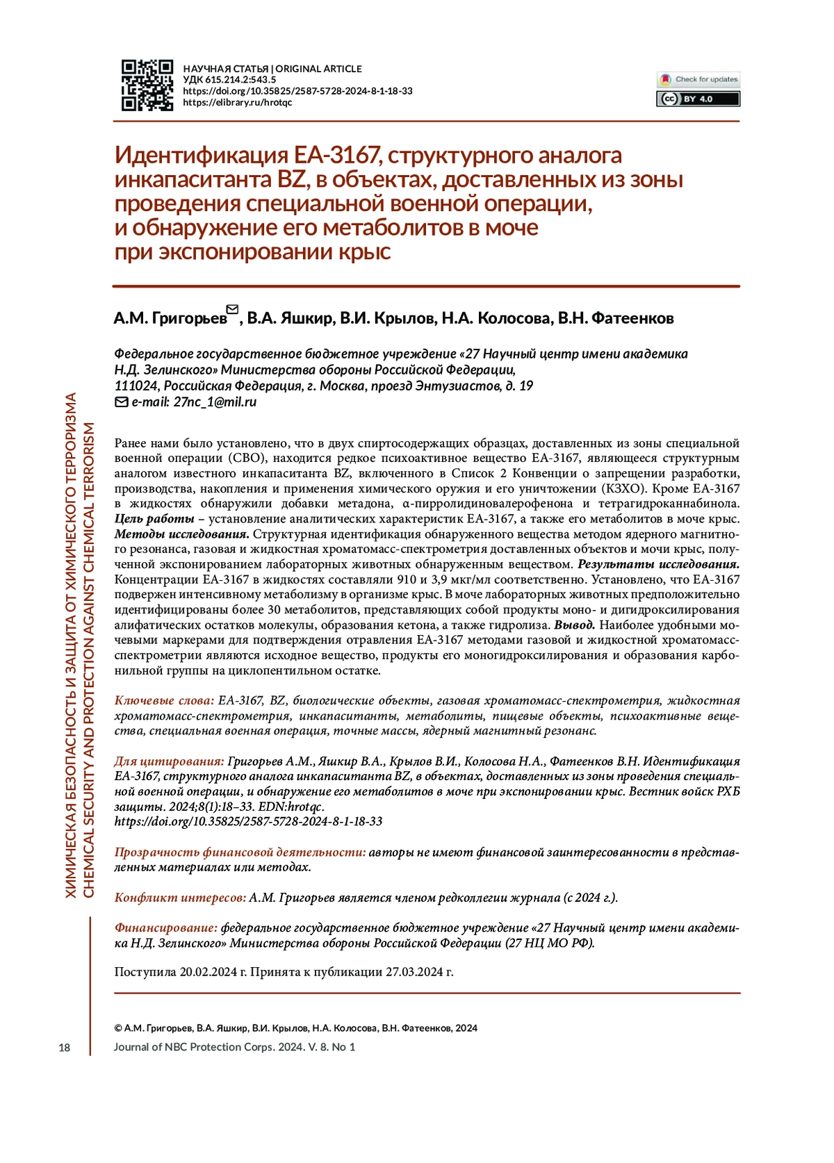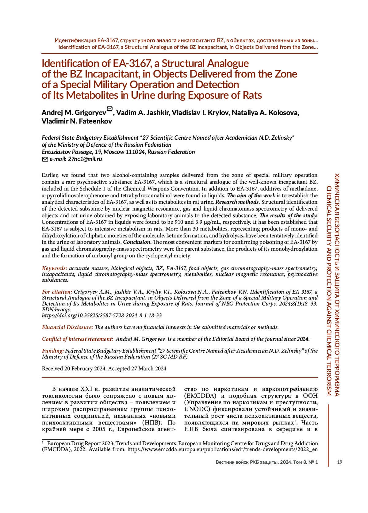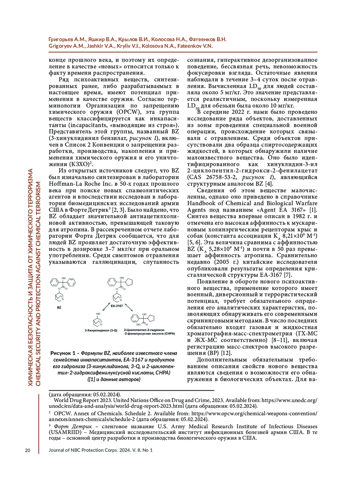 4. Григорьев АМ, Фатеенков ВН. Современные психоактивные вещества и их обнаружение в биомедицинских пробах. Вестник войск РХБ защиты. 2022;6(4):320-41.