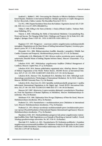 34. Susskind L., Babbitt E. 1992. Overcoming the obstacles to effective mediation of international disputes. Mediation in International Relations: Multiple Approaches to Conflict Management. Ed. by J. Bercovitch, J. Rubin. London: The Macmillan Press Ltd. P. 30-51.