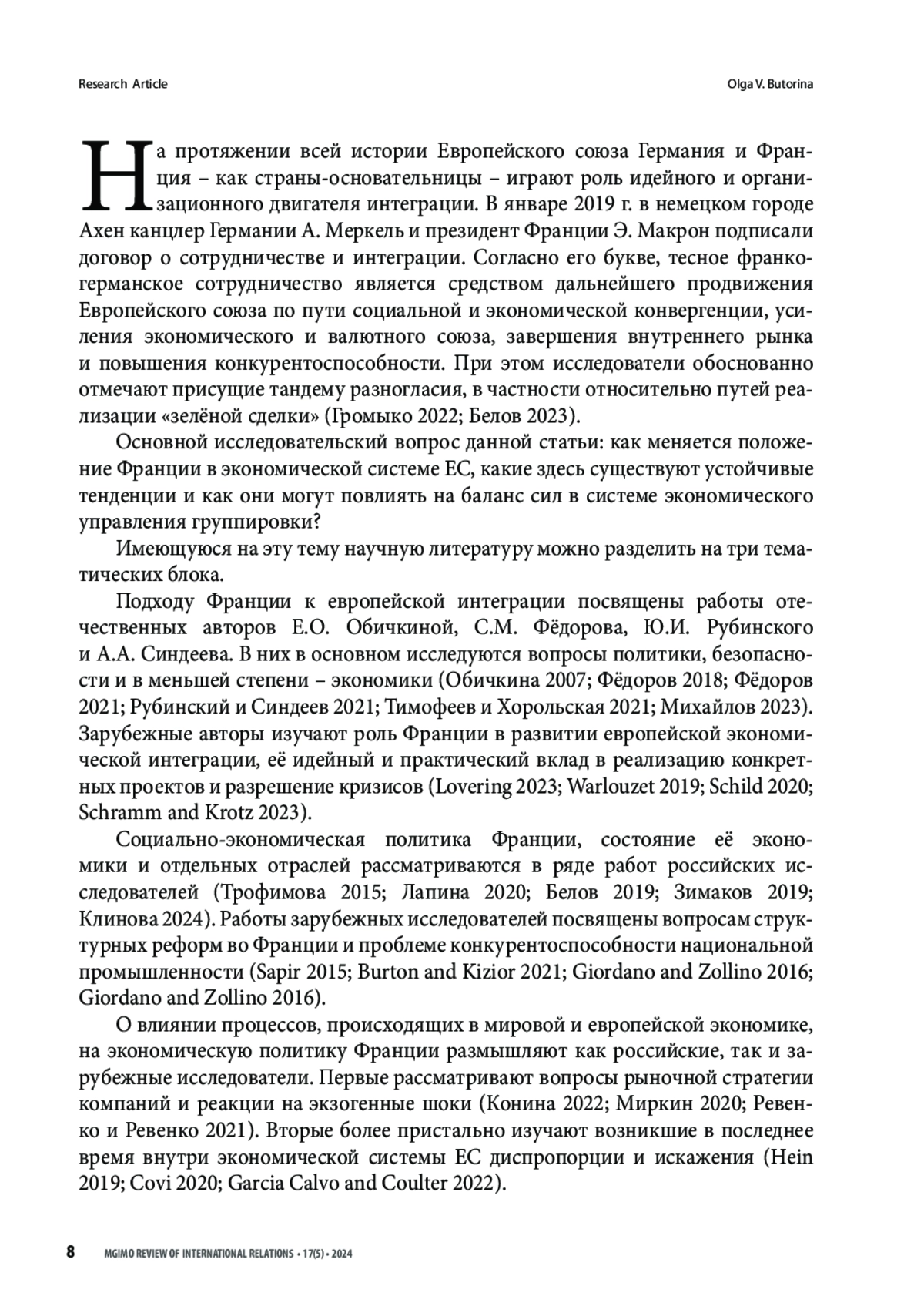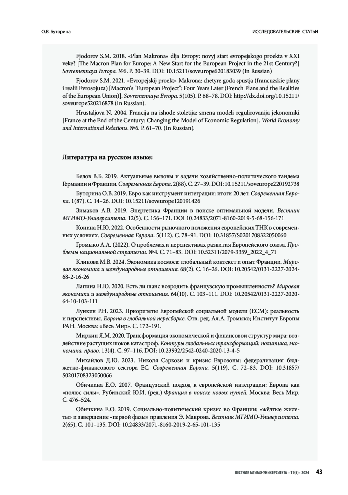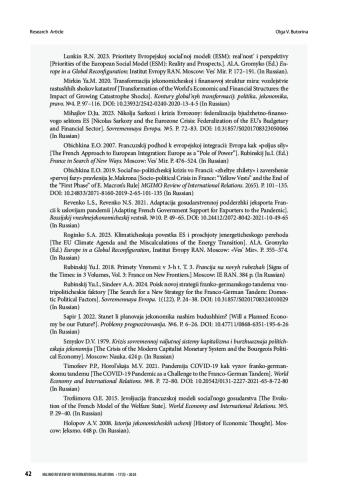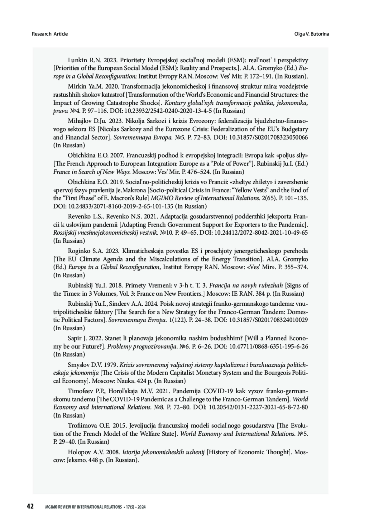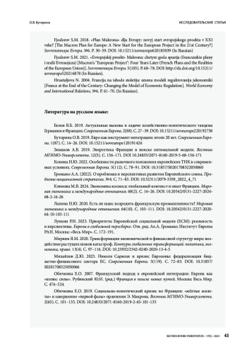 41. Рубинский Ю.И., Синдеев А.А. 2024. Поиск новой стратегии франко-германского тандема: внутриполитические факторы. Современная Европа. 1(122). С. 24-38. https://doi.org/10.31857/ S0201708324010029