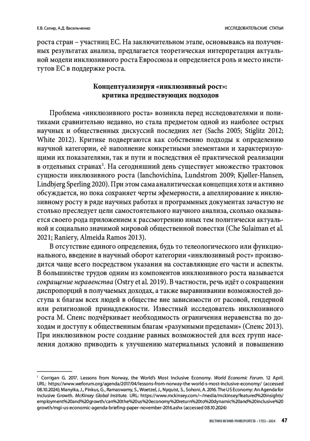 16. Ranieri R., Almeida Ramos R. 2013. Inclusive Growth: Building up a Concept. Working Paper. №104. Brasilia: International Policy Centre for Inclusive Growth (IPCIG).
