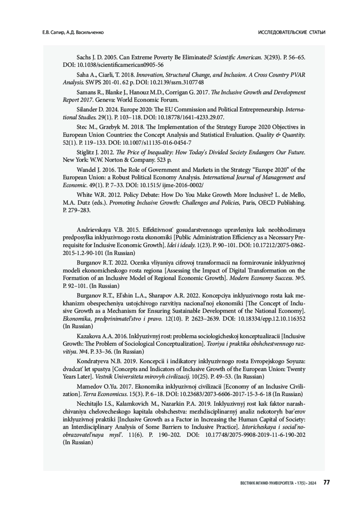 30. Казакова А.А. 2016. Инклюзивный рост: проблема социологической концептуализации. Теория и практика общественного развития. №4. С. 33-36.