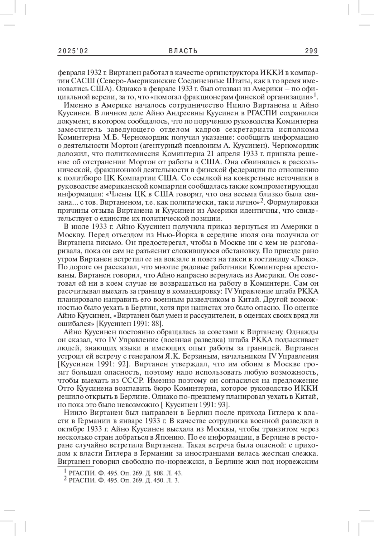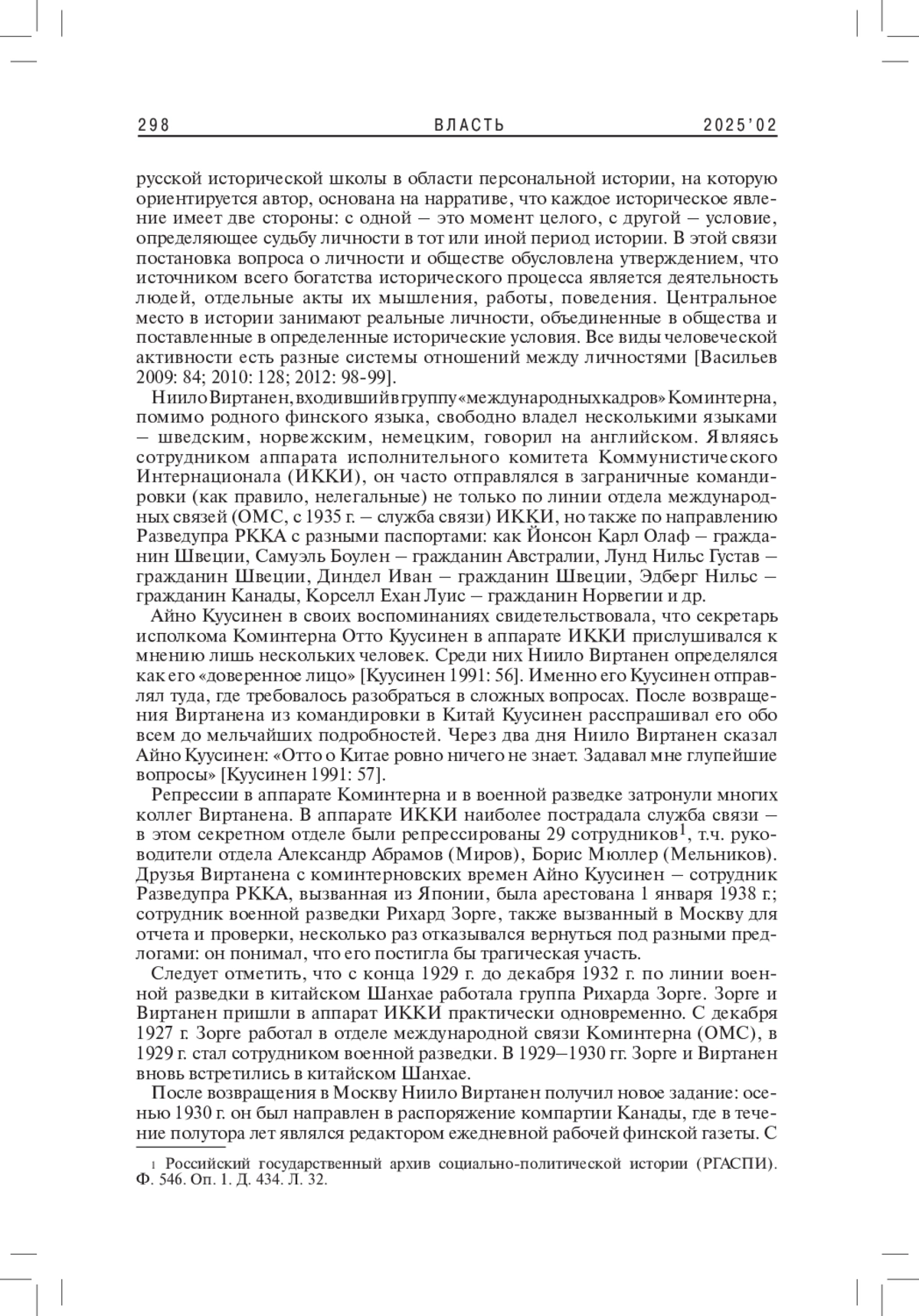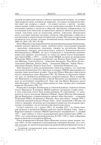 В контексте персональной истории освещается судьба Ниило Карловича Виртанена. В качестве агента отдела международной связи (служба связи) аппарата Коминтерна, сотрудника советской военной разведки он выполнял секретные задания в Скандинавских странах, в Канаде, США, Германии, Китае. Документальную основу публикации составляют архивные материалы, которые раскрывают неизвестные аспекты нелегальной деятельности Виртанена. Автор показывает страницы дружественных связей и отношений Ниило Виртанена с коллегами по Коминтерну, сотрудниками военной разведки Айно Куусинен и Рихардом Зорге, затрагивает проблематику, связанную с политическими репрессиями второй половины 1930-х гг., жертвой которых стал Виртанен.