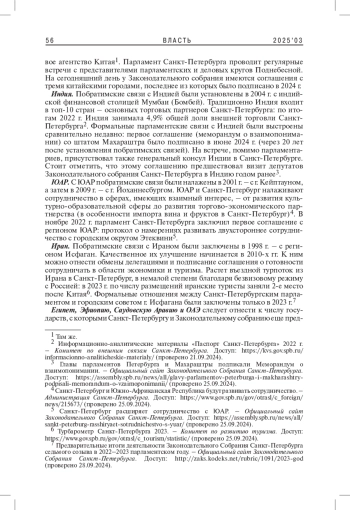 В данной статье автор анализирует состояние и перспективы развития международных связей Санкт-Петербурга в новых геополитических условиях. Автор делает акцент на анализе международной деятельности парламента Санкт-Петербурга со странами - членами БРИКС+. В статье дается сравнительный анализ соглашений правительства и парламента Санкт-Петербурга с регионами стран - членов объединения, включая обзор основных достижений, направлений деятельности и потенциал дальнейшего развития.