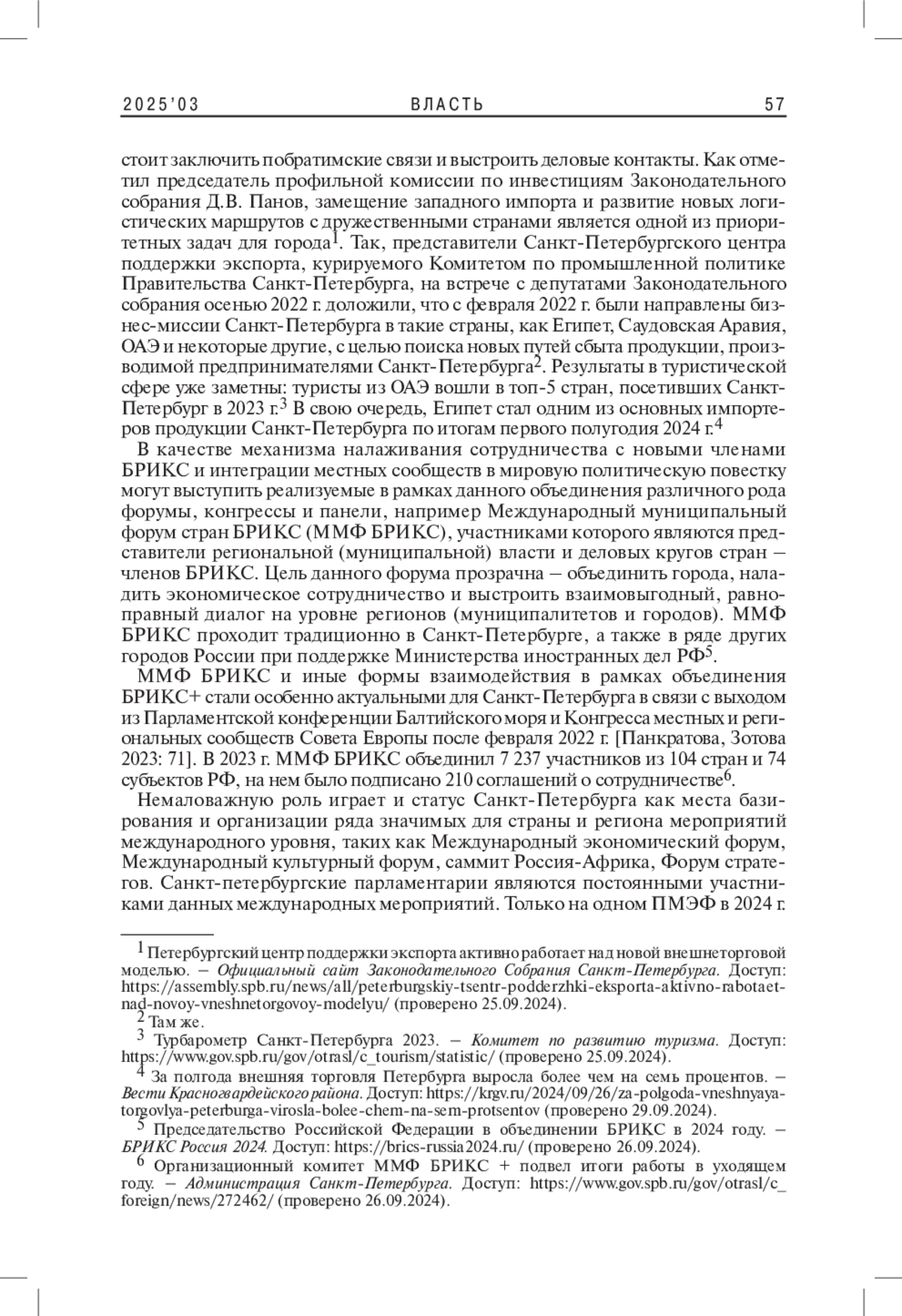 3. 	Панкратова А.А., Зотова А.В. 2023. Динамика международных и внешнеэкономических связей Санкт-Петербурга как опыт дипломатии городов. - КЛИО. № 6(198). С. 66-76. DOI: 10.51676/2070-9773_2023_06_67 EDN: VXXGLN