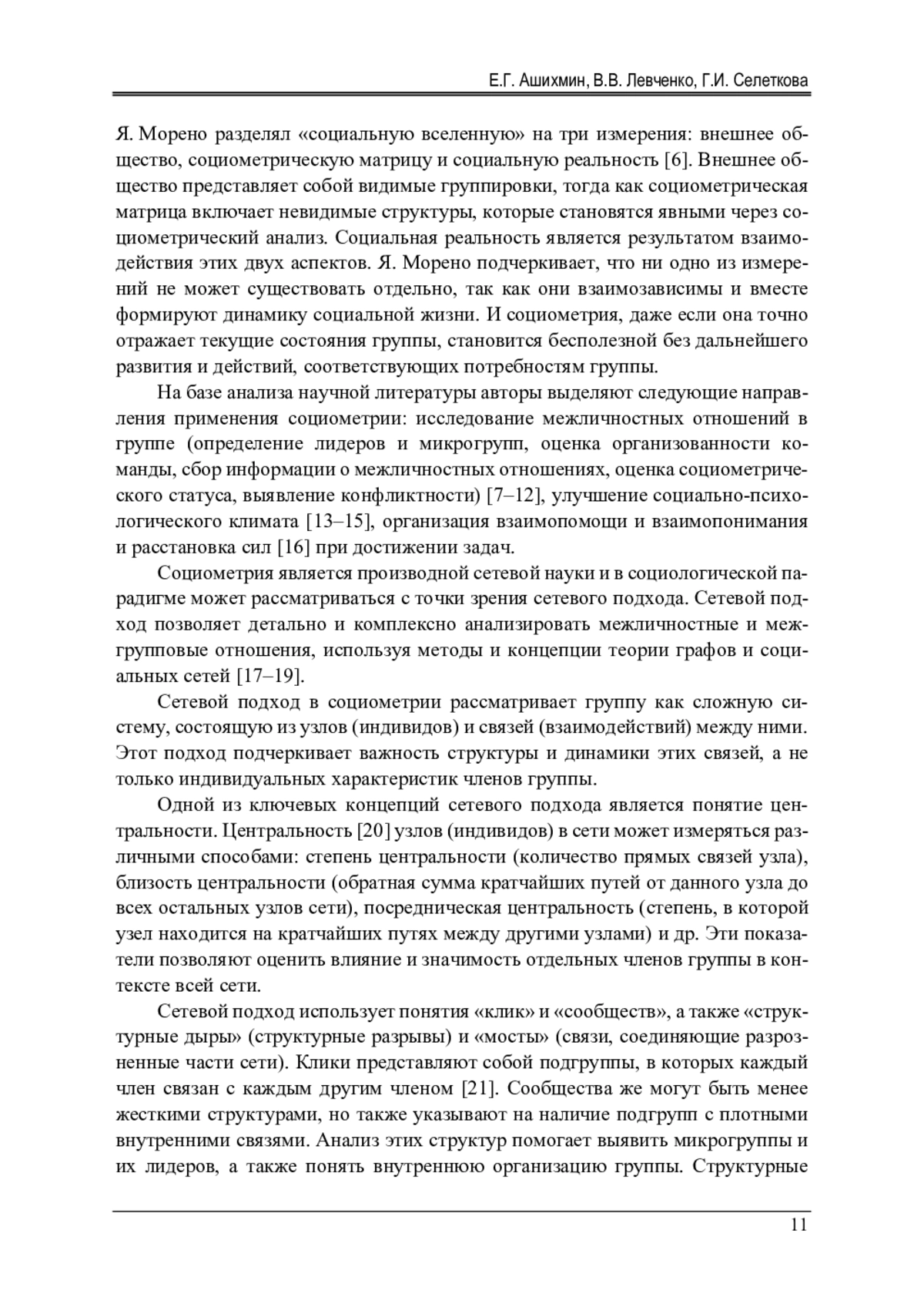 11. 	Надеждин, Д.С. Особенности социометрического статуса школьников на разных стадиях обучения [Электронный ресурс] / Д.С. Надеждин // Новые исследования. - 2020. - № 1 (61). - URL: https://cyberleninka.ru/article/n/osobennosti-sotsiometricheskogo-statusa-shkolnikov-na-raznyh-stadiyah-obucheniya (дата обращения: 21.07.2024).  EDN: KTIEZD