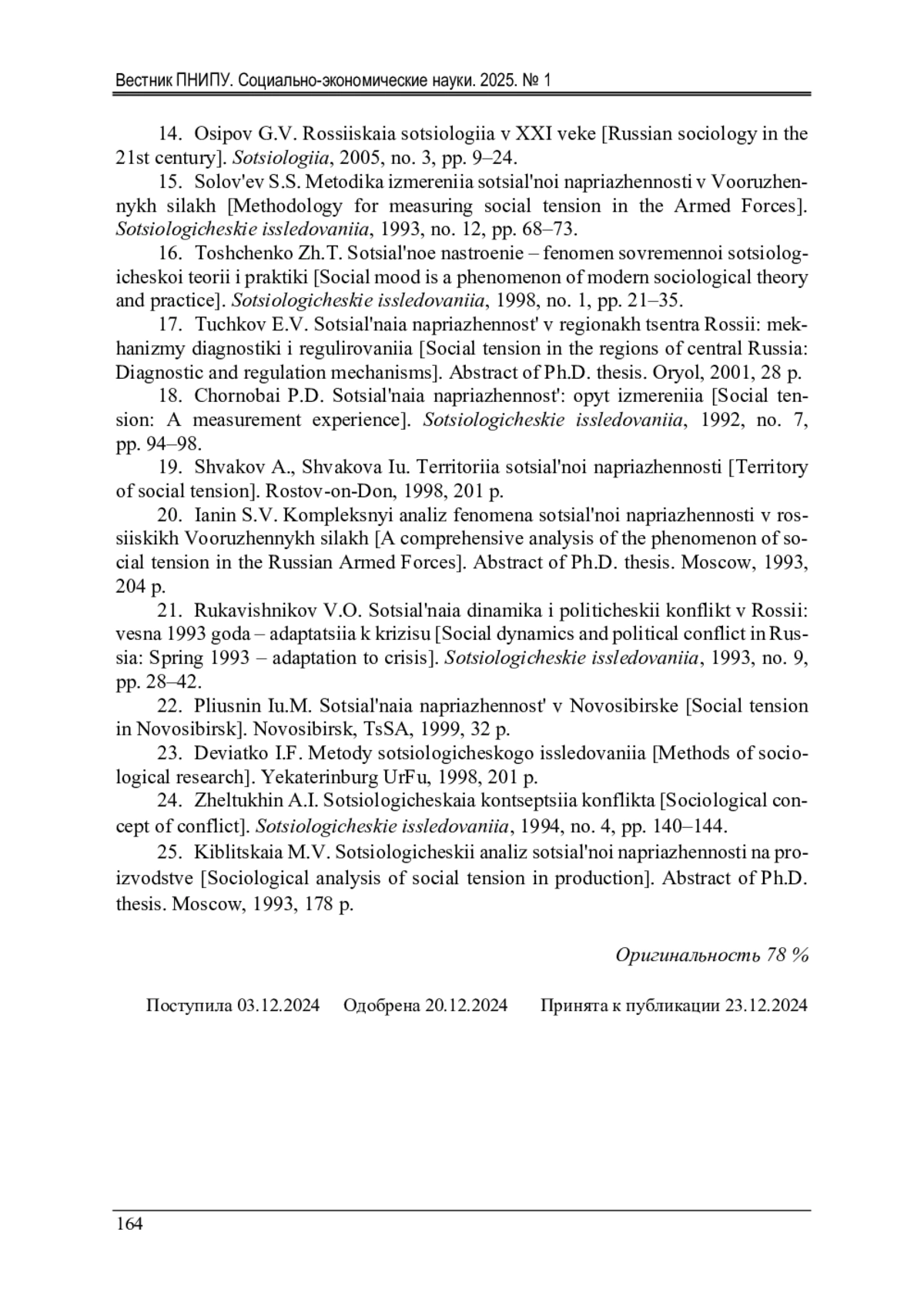 20. Янин, С.В. Комплексный анализ феномена социальной напряженности в российских Вооруженных силах: автореф. дис. … канд. социол. наук / С.В. Янин. - М., 1993. - 204 с. EDN: ZJGFKT