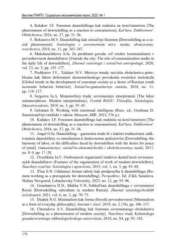 14. 	Гончарова, Д.Н. Субкультура дауншифтинга в современной России / Д.Н. Гончарова, В.Н. Муха // Журнал социологических исследований. - 2021. - Т. 6, № 2. - С. 70-73.  EDN: LICULC