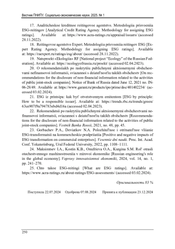 17. 	Аналитическое кредитное рейтинговое агентство. Методология присвоения ESG-рейтингов [Электронный ресурс]. - URL: https://www.acra-ratings.ru/appraisal/issuers/(дата обращения: 28.11.2022).