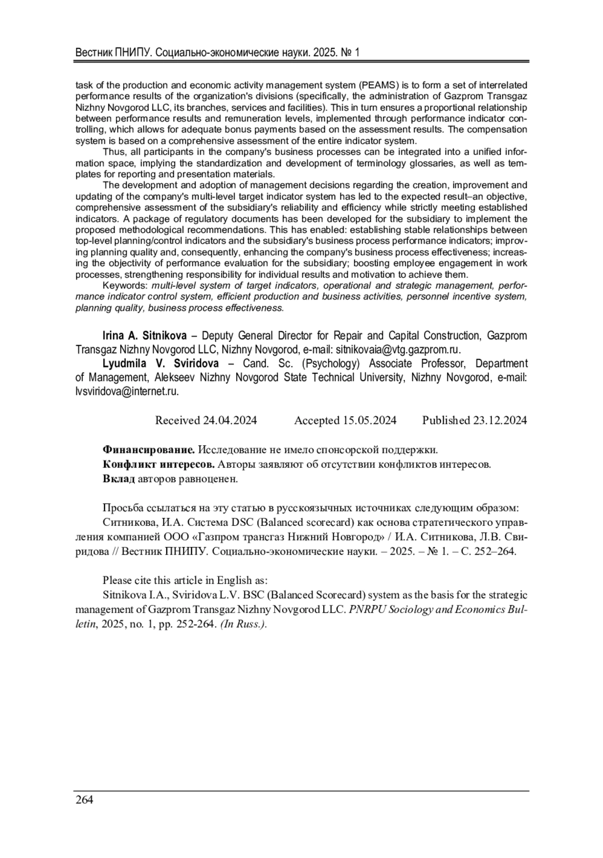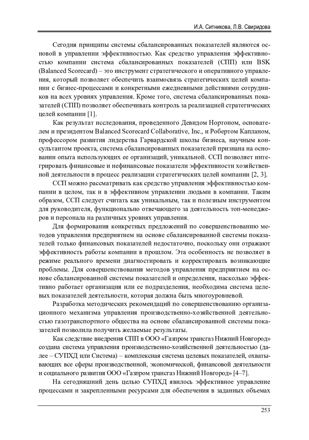 21. 	Ромашова, И.Б. История возникновения и роль концепции системы сбалансированных показателей в теории стратегического управления организацией / И.Б. Ромашова, И.А. Ситникова // Наука, образование, технологии в эпоху глобальной трансформации: моногр. - Петрозаводск: Новая наука, 2024. - С. 5-30.  DOI: 10.46916/07052024-1-978-5-00215-369-5  EDN: GAWSKL