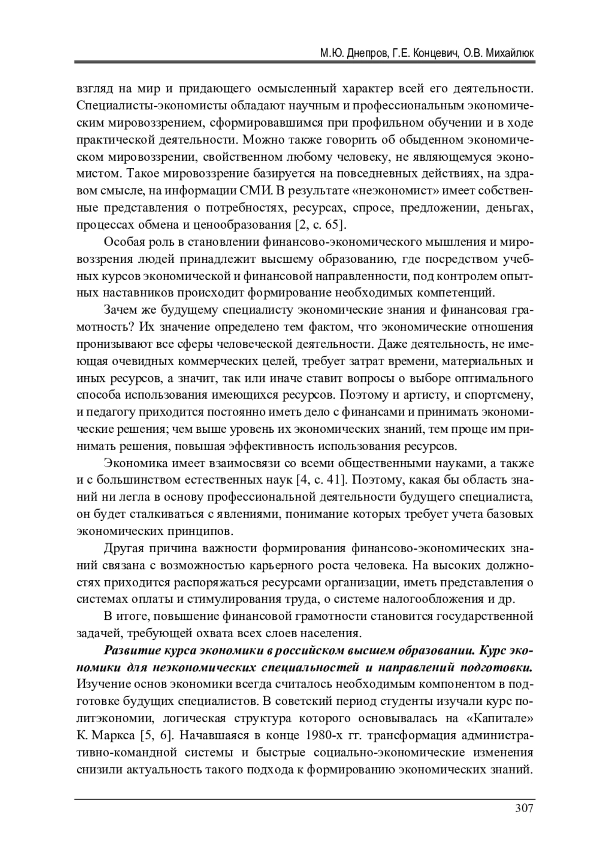 2. 	Днепров, М.Ю. Микро- и макроэкономика как основа экономического мышления и экономического мировоззрения специалистов / М.Ю. Днепров, О.В. Михайлюк // Современные фундаментальные и прикладные исследования. - 2017. - № 2-2 (25). - С. 64-70.  EDN: ZBFSJB