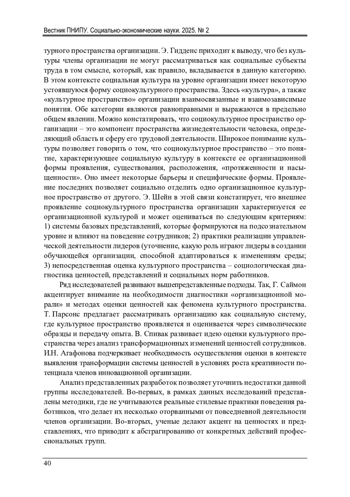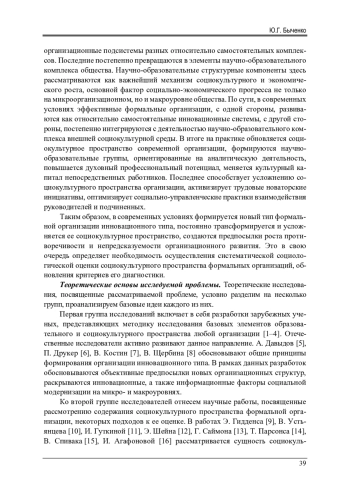 Введение (обозначение проблемы). В современных условиях формируются новые формы формальной организации в виде инновационных социальных систем, которые включены и интегрированы в образовательные, производственные, научные структуры общества. На практике социокультурное пространство данных организаций расширен