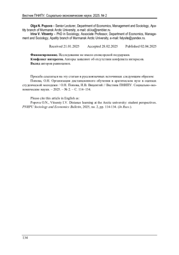 Развитие информационно-коммуникационных цифровых технологий стимулирует инновационные практики образовательного процесса, связанные с внедрением элементов дистанционного обучения в разных его формах и на разных уровнях образования. Данный показатель в России существенно ниже в сравнении с рядом стран (однако наблюдается рост показателей использования интернета с целью дистанционного обучения). Цель представленного исследования заключается в том, чтобы сделать социологический анализ процесса организации учебного процесса в дистанционной форме в региональном вузе, локализованного в условиях российской Арктики с позиции специфического агента института образования - студентов, а также определить возможности и преимущества, ограничения и основные проблемы, которые сопряжены с его реализацией, для определения направлений совершенствования учебного процесса с применением дистанционных технологий в вузе. Для достижения заявленной цели в работе привлекаются данные конкретного кейса - результаты анкетирования студентов регионального вуза, полученные в период пандемии COVID-19. Исследование опыта реализации учебного процесса в дистанционной форме в вузе с позиции обучающихся позволило выделить ряд направлений для его дальнейшего совершенствования: нормативно-правовые основы, учебно-методическое обеспечение, материально-техническое обеспечение, социально-культурные основы. Научная новизна исследования состоит в том, что оно позволяет расширить границы научных представлений в области теории и методики дистанционного обучения с использованием современных информационных технологий. Также работа имеет прикладное значение для области педагогики высшей школы, поскольку удалось определить перспективные направления для совершенствования учебного процесса в дистанционной форме, а также его отдельных элементов. Данное исследование может быть продолжено в направлении изучения удовлетворенности дистанционным обучением других участников образовательного процесса (преподавателей вуза, студентов заочной формы обучения), реализации мониторинга удовлетворенности дистанционным образованием и его отдельными элементами в рамках традиционной формы обучения студентов в вузе.